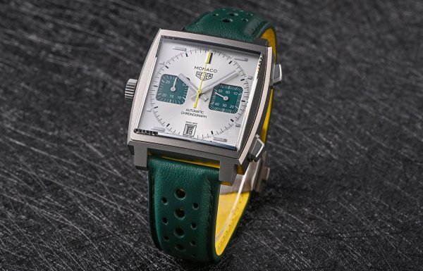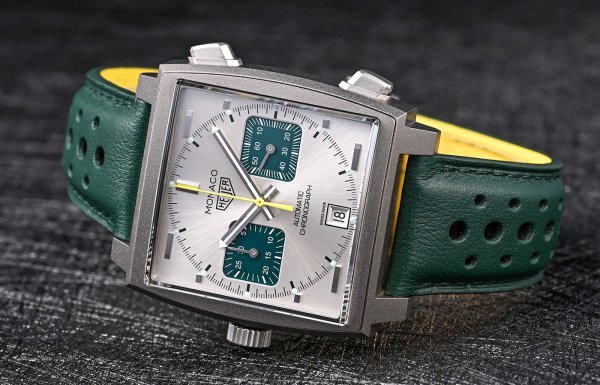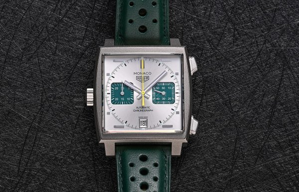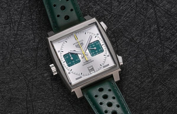 全新摩纳哥“竞速绿”计时码表继承了初代摩纳哥腕表的设计精髓:方形防水表壳、抢眼独到的惊艳配色、高辨识度计时表盘及各项赛车细节都在传达着其作为专业型赛车计时表的不凡之处。