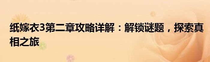 第一章顺利通关后,我们来到了纸嫁衣3第二章的探险之旅。在这一章中,你将面临更为复杂和棘手的谜题挑战,只有解锁这些谜题,才能进一步揭开纸嫁衣背后的真相。以下是第二章的详细攻略,帮助你顺利过关。