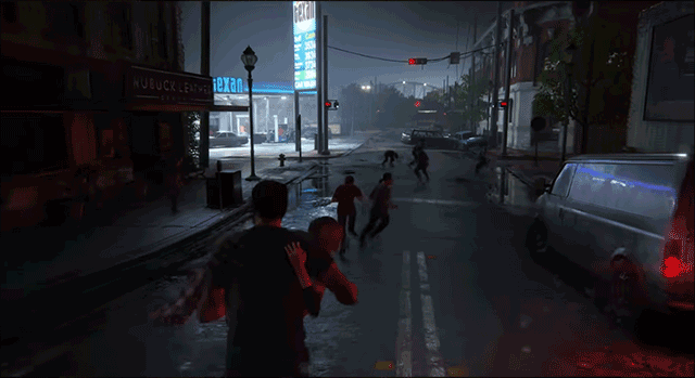 4、接着,在这里玩家就可以操作男人进行逃跑了,家里已被众多僵尸攻下,自然要跑到安全的地方去;