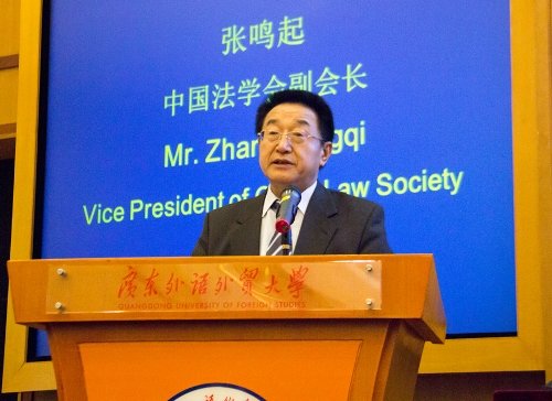 2017年6月9日下午,中非法律人才交流项目第四期研修班结业典礼在广东外语外贸大学隆重举行。中国法学会副会长张鸣起、广东省法学会会长梁伟发、广东外语外贸大学党委书记兼校长隋广军及尼日利亚驻穗总领事沙基卢登•阿德瓦勒•欧洛卡等出席结业典礼并分别致辞。典礼由广东外语外贸大学法学院院长、广东省法学会“走出去”战略下涉外法律研究服务中心主任胡充寒主持。