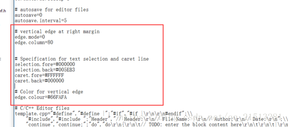 3.把此代码也替换掉框选处 # vertical edge at right margin edge.mode=0 edge.column=80