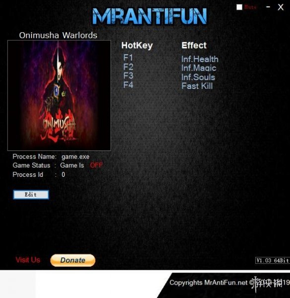 元素武器 武器方面,有雷火风三种属性,隐藏的昆沙剑更是一览众山小的快感。 简单模式 游戏原作中需解锁的Easy模式,这部高清版中开始就可以选择,适宜初次涉猎这个系列的玩家,游戏还支持摇杆操作。 >>>鬼武者:重制版 v2019.01.20四项修改器MrAntiFun版