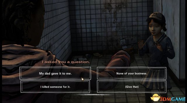 第一章:一切照旧 第一节 《行尸走肉》(游戏版)前情提要 ①.(画面回放)李在克莱蒙谭家与克莱蒙谭初遇,并开始两人的寻亲之旅。 ②.(画面回放)李刚认识拉瑞后,就被拉瑞训斥他,因为拉瑞知道李,就是杀人凶手(李错手杀害了前妻的男友)。 ③.(画面回放)处理掉吃人农庄一家人后,克莱蒙谭向询问那些吃人魔都“死”了没? ④.(画面回放)克丽斯塔与李、克莱蒙谭相遇后,告诫李如果真的要“送佛送到西”,就嘚在这个糟糕的世界上付出100%真心对待克莱蒙谭。 ⑤.(画面回放)李在列车上为克莱蒙谭理发后,再教她如何开枪。 ⑥.(画面回放)在前往萨凡纳附近驻守的大宅内,克莱蒙谭相信父母亲就在萨凡纳,希望李能够让她一同前往。 ⑦.(画面回放)在前往萨凡纳附近驻守的大宅小缘内,克莱蒙谭被那帮患有绝症的老人掳走,李在苦苦寻找时被行尸咬到了手腕。 ⑧.(画面回放)李去到了马卡比渔港附近的旅馆,找到了企图圈养克莱蒙谭的男子(根据他的对话能容,可以推断是之前在吃人农庄遇到的那位偷拍克莱蒙谭的女子有关),并且将他给处理掉。 克莱蒙谭扑在李的胸怀上,跟他说,她已经见到她的亲生父母了… ⑨.(画面回放)最后的画面是在李尸毒攻心而晕去的商店内,克莱蒙谭回望李一眼后伤心欲绝地离开。 ![]() 剧情:画面来到了一座针叶兰之中,看来天气已经开始转凉了,而我们的小主人翁克莱蒙谭亦穿上了厚实的冬装,在她的右手隐约能看见一把银色的枪。 ![]() 剧情:原来当时在第一季结束时与克莱蒙谭相遇的两人正是逃出尸群大潮的欧米德和克丽斯塔。 如今的克丽斯塔已经顶着一个大肚子,看来孩子要在这个冬天里诞生了。 欧米德正打算攻入眼前的一家餐馆,可是已经变得沉稳的克丽斯塔却有些犹豫(毕竟是孕妇了)。 ![]() step1.欧米德可能想要把这个餐厅作为小欧米德的安乐窝,当然一个欧米德就够克丽斯塔烦恼一整天了。 她就向克莱蒙谭提议,要克莱蒙谭为即将到来的婴儿决定名字。 选项:①.欧米德是一嗰好名字;②.你们俩该你们俩自行决定;③.如果是嗰女孩儿,欧米德的名字就不适合了;④.沉默。 ![]() 剧情:(选择step1中的①)欧米德当然仍同克莱蒙谭的回答,对吖,现在只剩他一个大男人,现在大小决定都是由他说了算; (选择step1中的②)显然只有两个人的投票是没有结果的,而克丽斯塔则是认为克莱蒙谭是在投弃权票,(以性别作为投票)那么事实应该是1:2。欧米德认为这不公平,但是他现在是唯一的男人,多少都得肩负起两位女士,总得要迁就; 随后欧米德要求克丽斯塔进入男洗手间(其实这种世道早就没有区分了)内梳洗,而克莱蒙谭就被要求去清理女洗手间(克莱蒙谭依然显得闷闷不乐)。 ![]() step2.进入到女洗手间内,里头有三个厕格,打开第一道门会看到一个崩缺的马桶;第二道门后的马桶上放着一嗰血淋淋的熊熊玩偶;第三道门是一嗰完好、较干净的马桶。 ![]() step3.检查完毕后,克莱蒙谭会走到洗手盆前,先照照镜子,看见自己肮脏的脸蛋显得有些消沉。 先点击一次水龙头,克莱蒙谭会先祈祷一下它会有水出,然后再一次点击水龙头,发觉自来水已经停了。 ![]() step4.(依然是洗手盘的方位)水龙头没有水,那只好拿出在洗手盘右侧的紫色书包内的一瓶矿泉水(就把手枪放在了背包旁边),克莱蒙谭把抹布在矿泉水瓶口沾点水,然后擦拭自己的脸(把水瓶也放在背包旁边)。 脸上的污渍抹去了,感觉也舒服多了。 ![]() step5.克莱蒙谭一嗰不为意就把水瓶给打翻在地,幸亏已经上好了盖子,可是水瓶却滚进了三个厕格当中。 打开从左数起第一道厕格的门,在马桶左下方就会见到刚才滚落的水瓶。 ![]() 剧情:可是这是克莱蒙谭听到女洗手间大门传来了短促的开门声音,一名女子潜入到女洗手间,并且在翻搜着克莱蒙谭的背包,最终拿起了背包旁边的手枪。 克莱蒙谭相当机智地踩在了马桶上,可是颤抖的小腿还是令到马桶挡板发出了细微的杂音,吸引到那名女子的注意。 ![]() step6.那女子走到第三嗰厕格前,打开了门,用枪指着克莱蒙谭,此时克莱蒙谭需要向那名女子标示自己是人类的身份而且是没有恶意的。 选项:①.你是谁;②.别过来;③.那是我的枪;④.沉默。 ![]() step7.(选择step6中的③)这名女子显然非善类,她把手枪据为己有了; (选择step6中的③)陌生女子认为克莱蒙谭这个回答是在是太愚蠢了,她当然斩钉截铁地拒绝了; 女子把克莱蒙谭喊道洗手间的过道上,然后她就再次翻查小背包,克莱蒙谭需要让这个女子放低警惕和停止搜刮她的背包。 选项:①.这背包已经是我的全部家当了;②.你叫什么名字?;③.你不必这么粗鲁;④.沉默。 ![]() step8.(选择step7中的①)显然陌生女子见惯“世面”,她就知道克莱蒙谭不可能一嗰小女孩儿依靠背包中的东西就能活这么长时间,她继续用枪威逼着克莱蒙塔; (选择step7中的②)克莱蒙谭打算以打招呼的方式去接触这位“抢劫犯”,可是对方并非吃素的,陌生女子仍旧是用枪头指着克莱蒙谭;; 她声称要嘣掉克莱蒙谭的脑袋,既然她那么激动,也只好求饶了。 选项:①.请不要开枪…②.我真的没有其他的东西了;③.请你拿着这些东西离开;④.沉默。 ![]() step9.(选择step8中的①)这女子开始发牢骚了,既然没办法从一个小女孩儿身上获得更多的东西,她只好把贪念转到克莱蒙谭头顶的帽子上,她问克莱蒙谭这帽子是从那儿嘚到的(显然就是希望克莱蒙谭把帽子“送