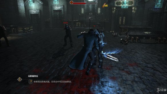 △战斗画面 玩家对游戏的第一印象来自于画面,而本作给玩家带来的第一印象就是糊和暗。游戏的人物建模和环境都不精细,无奈就只能通过这种方式来完成“遮瑕”。整个游戏的流程里都以昏暗的色调居多,当不可避免的需要拉近镜头给人物特写的时候,就会很清晰的暴露出角色表情生硬,没有情感流露的尴尬。很想吐槽的是在故事的剧情中艾森霍恩是在被抓后由于残酷的审讯折磨才导致面部几乎不能在做任何表情的,但是从游戏开始到结束你的表情丫的就没变过好么,好吧,其实不是针对你,是游戏中基本上每一名角色都挂着生硬的扑克脸。 在画面这一环中还有很多接二连三的问题,比如时不时的会出现模型的崩坏,笔者就清楚的记得在开始后的一段剧情里,艾森霍恩捡起威本尸体旁的手枪时,枪支和大衣都出现了这类的问题。