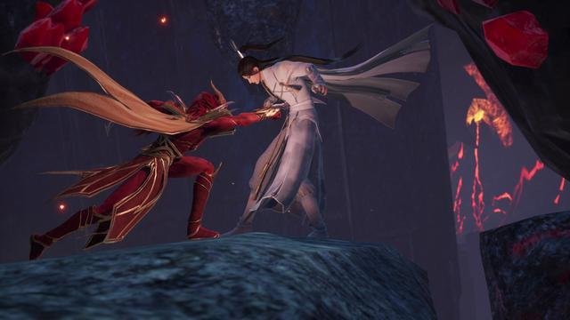 除了在定格的远景画面上发力,在演出上《仙剑奇侠传7》同样呈现了不错的质量,尽管大概是出于经费的掣肘绝大部分演出以站桩对话的形式进行,但做了即时演算动画的部分从导演视角到特效呈现都非常不错,甚至花样上也谈得上丰富多彩——我们在上图中可以看到小秋的回忆还学习了一把《嗜血代码》中的演出形式。