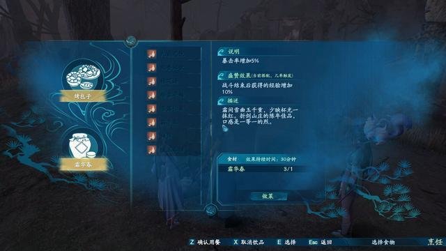 除此以外还存在着餐饮和御灵两个系统,餐饮的话可以选择食物和酒水各一份,会存在不同的动画(尽管简陋)和对应台词,算是还不错的设定(加上女二是法爷毁天灭地、男二是逗趣乐子人让这游戏有了一点《破晓传说》的既视感)。