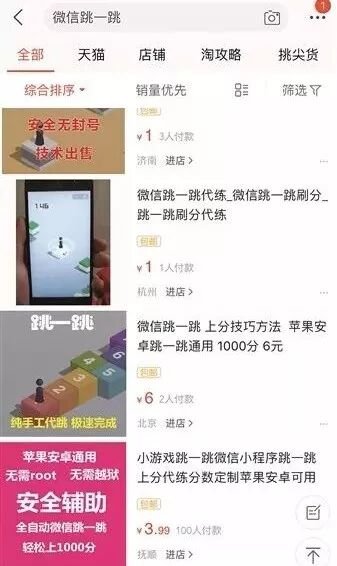 看到这里你终于恍然大悟了吧! 用了这些攻略之后你增加了多少分? 深扒一下,高分攻略往往没有我想的这么简单, “跳一跳”还能花钱代玩? 有部分商家在网上公开出售“代玩”服务,宣称花费数十元,即可让买家刷分至500分以上,挤进朋友圈的排名前列。