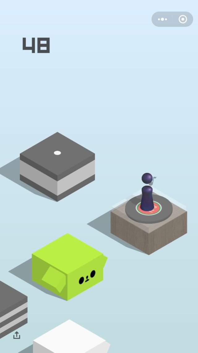 6、注意微调:当你跳到新的方块上的位置离中心较远的时候,需要注意及时调整跳到下一个方块上力度,假如你的距离一直偏离较多,那么离Game Over也就不远了。