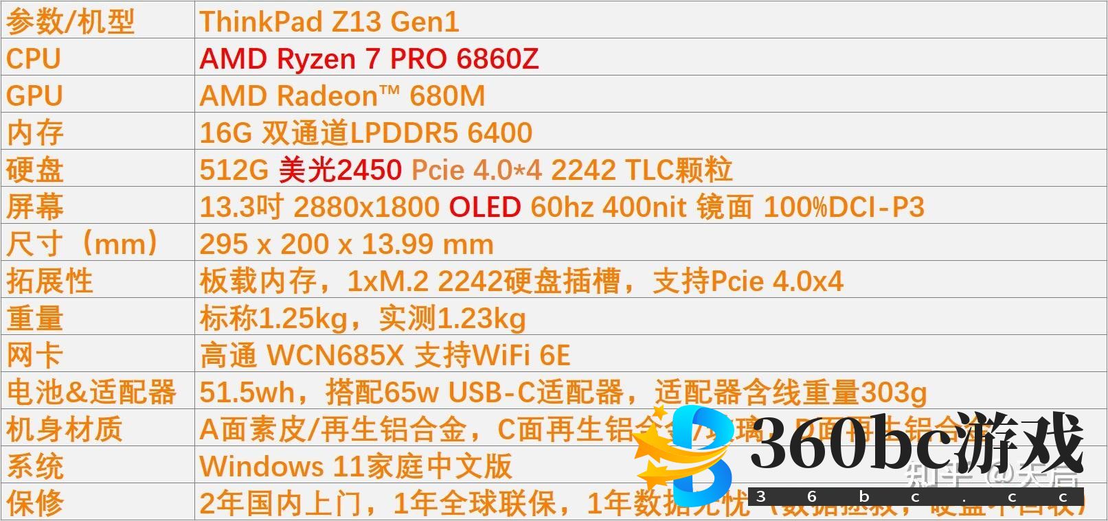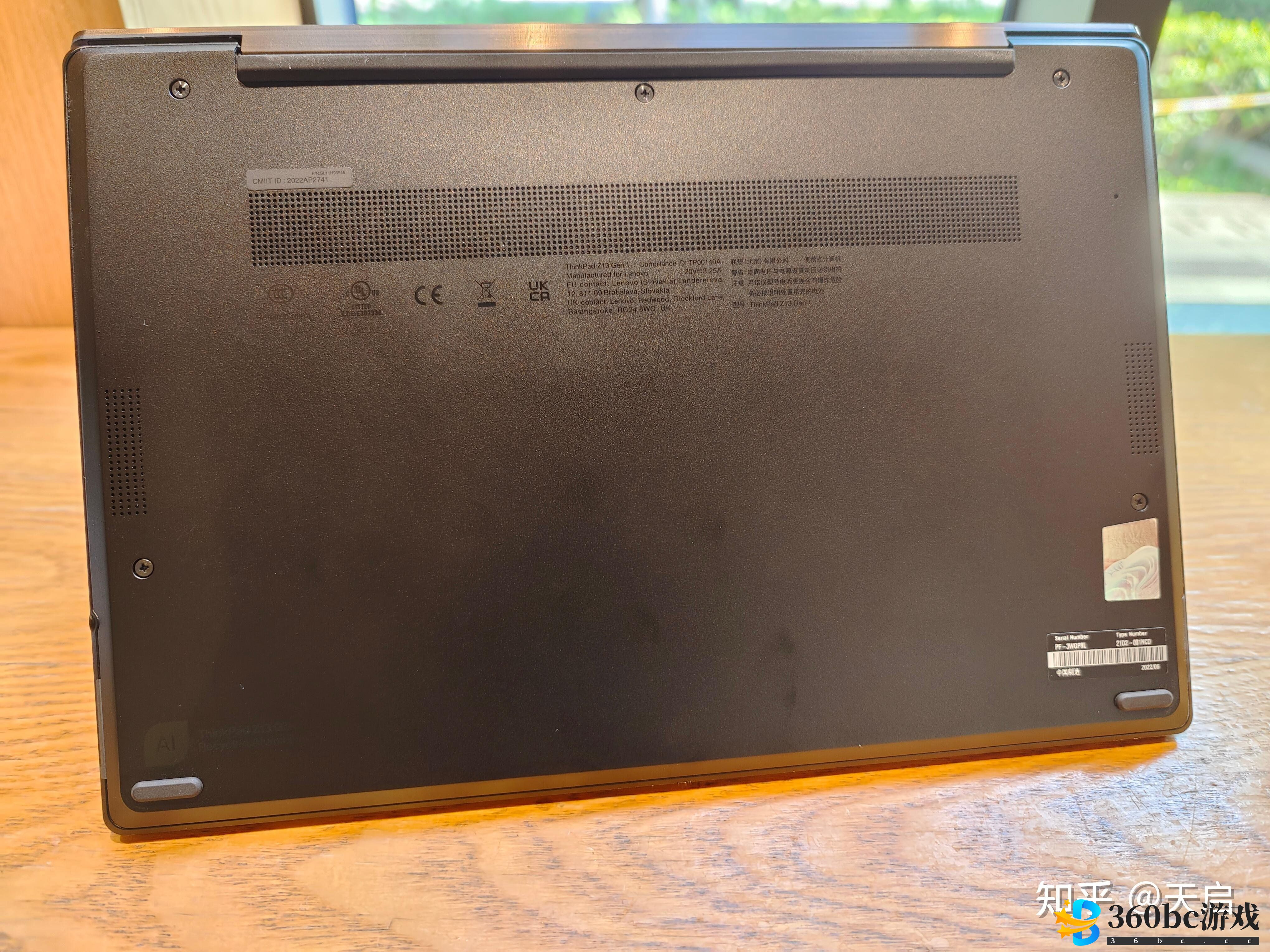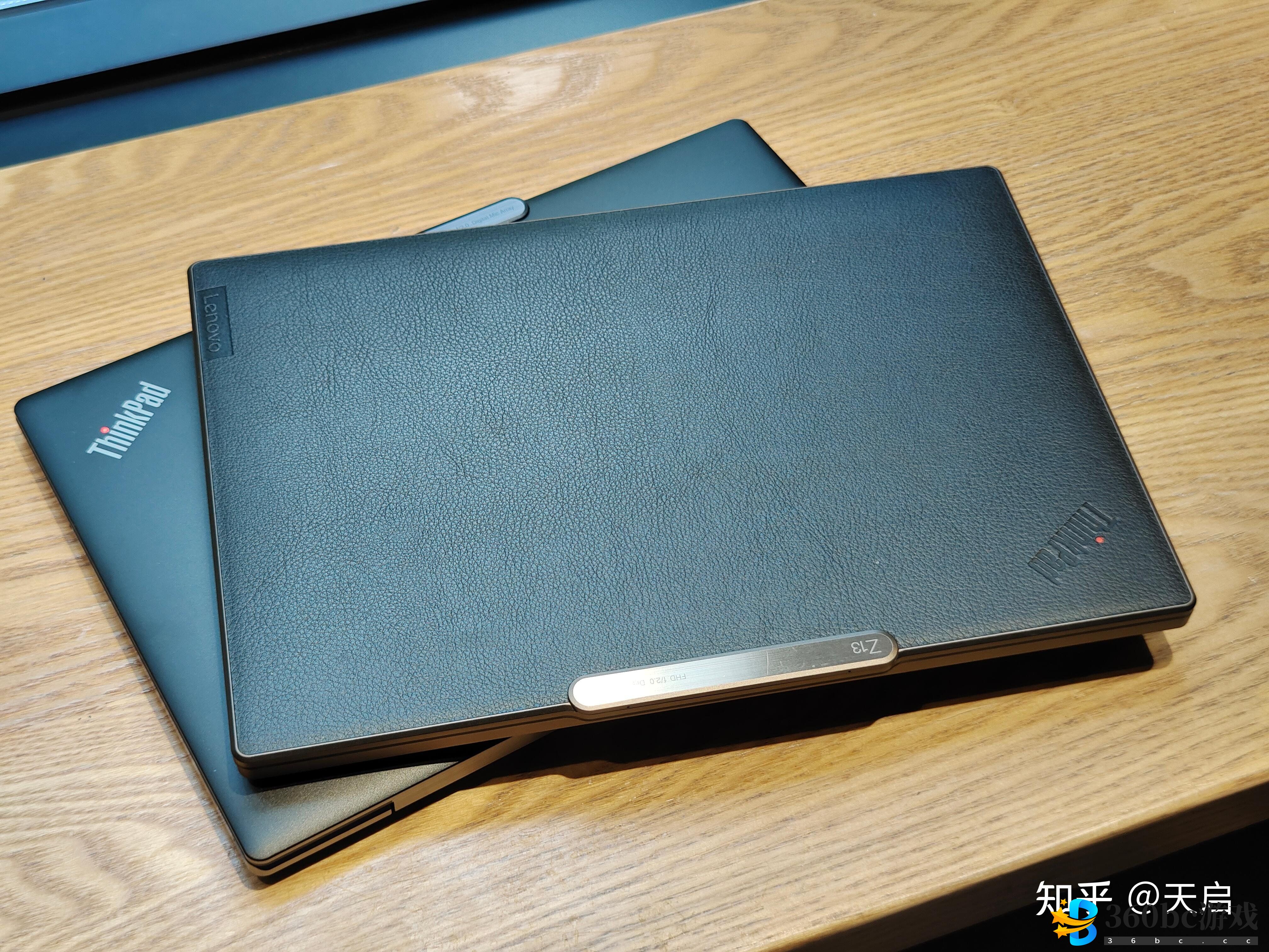 ![]() 这在当时可谓是引起了轩然大波,但是后来发生的事情我们也都知道了,X1蜕变成为了X1 Carbon,成为了Windows阵营旗舰级轻薄本中竞争力最强的选手之一,其综合魅力在十多年后的今天,也依旧不减当年。 而在十多年后的2022,ThinkPad再次推出了设计风格与以往产品线迥异,面向Z世代年轻人的新系列——ThinkPad Z系列,并且因为这是AMD冲高的亲儿子项目,因此新款的Z系列全系采用AMD处理器。无心插柳,这倒也正好顺应了现在懂产品的年轻人们的喜好。考虑到Surface Laptop整体仍然是以Intel版为基准设计,并且今年即将发布的Surface Laotop5将不再提供AMD版本,因此现在的Z13应该是市面上最高端的AMD轻薄本,没有之一。 为了看看这个在今年新发布,也许会在未来成为当年X1一样的新设计风格试水机的产品具体表现到底如何,今天我找朋友借来了两台Z13,来一探究竟。 国行上的只有R7,16G/512G,2.8k OLED屏这一个配置,但是提供了皮革黑/金属黑/风暴灰三种配色组合,我个人觉得前两者的颜值都很不错(尤其是皮革黑那个黑+铜色真的是深得我心),但是最后一个有些抱歉,因此只推荐前两者。 ![]() 我拿到的Z13是国行的标配版,搭载了今年锐龙特别为ThinkPad定制的锐龙 7 PRO 6860Z处理器,这个Z的后缀实际上就是Z系列独享的意思。相比该处理器的原型锐龙 7 PRO 6850U,主要的区别在于最大睿频从4.7Ghz升级成了4.75Ghz。虽然性能进步不大,但是单型号独享处理器它排面啊) 不过相比光鲜无限的CPU,硬盘的表现就只能说是差强人意了。Z13这次搭载的,是来自镁光的2450.作为一块入门级的Pcie 4.0固态硬盘,它的顺序读写是比较一般的,好在真正影响日常使用的4K性能都可以得到保证。在13吋,只有2242硬盘位的笔记本上使用性能较弱,但是发热更为可控的硬盘也算是ThinkPad的一个小传统了。 最后值得一提的就是ThinkPad今年新升级的保修服务了,从原来的一年国内上门同时带一年全球联保升级为了两年国内上门+一年全球联保,算是现在国内能买到的机器里非常出色的保修服务了。 ![]() 电源方面,本机随附的是65w的便携式PD充电器,输出接口为USB-C。表面为磨砂材质,侧面稍微突起方便握持。自带的红色束线器配合黑色的适配器本体,正好是ThinkPad传统的红黑设计的又一体现。因此个人觉得这个适配器是原装适配器中比较好看的一个。体积方面,与一般的6.67吋手机比还是小了比较明显的一圈的,不过如果你真正想要最便携的旅行体验,个人还是首推口红电源。 ![]() ![]() 我这次拿到了Z13的两个版本,上图为铜色+黑色素皮版(也就是官方所说的皮革黑),下图为普通的黑色铝合金版(也就是金属黑)。我会先来介绍整机的外观设计,最后再简单用几张图来说说铝合金版与素皮版的区别。 今年的Z13在A面设计上最吸引人眼球的,实际上就是这个刘海设计。在苹果用上了内陷刘海来容纳摄像头之后,ThinkPad同样为了容纳摄像头(并能让人一眼看出来你用的什么机器),采用了凸刘海的设计。 ![]() 仔细看我们实际上可以发现,这个凸刘海实际上是由多层结构拼接而成的。其中容纳了双麦克风和1080P分辨率的摄像头。考虑到疫情的持续影响,线上会议会在相当长的时间内持续成为笔记本使用非常频繁的场景,因此未来厂商推出最高4k分辨率的内置摄像头也不是不可能的事情,此时今年X1 Carbon这样的小刘海方案的体积会不够,只能在做凸刘海和加宽屏幕上边框中二选一。至于今年这个1080P摄像头也要上刘海,个人觉得一方面是因为Z13对屏占比的极致追求,另一方面就是他们可能真的觉得这个刘海挺好看的。 ![]() B面的设计思路非常简单明了:做ThinkPad中最高的屏占比。最终他们确实也做到了,下边框甚至已经窄的放不下机器型号了,非常符合现在消费级笔记本的审美。 ![]() 同时,ThinkPad Z13还在ThinkPad上首次搭载了隐藏式下沉轴,这种设计能够尽可能的把转轴隐藏在机身中从而实现更好的一体感,当然,这种由苹果首发的转轴设计最大的问题就在于,不支持ThinkPad传统的180度开合功能了,本机的屏幕的最大开合角度只有135度左右。当然,Z13也支持苹果的看家本领单手开合。 ![]() C面的设计也十分前卫与大胆,不仅在ThinkPad中如此,在整个轻薄本领域里也都是这样。Z13的C面采用了铝合金+AG玻璃的材质,键盘上方的C壳是铝合金的,而下方的掌托位置,表面材质则和触摸板的AG玻璃保持完全的一致,当然,掌托表面的AG玻璃下方,仍然是回收铝合金的框架以保证整机的强度。我个人非常喜欢AG玻璃材质的掌托。相对于常规金属,AG玻璃导热效果更差,不会出现烫手或者冻手问题。相对于塑料,AG玻璃的质感明显更好。相对于带类肤质图层的金属,则几乎不会沾染油脂。并且和触摸板桶材质会让C面的一体感更好。当然商用出身的ThinkPad仍然保持了触摸板的实体分界线,保证了实用性。 ![]() 因为C面的独特设计,因此ThinkPad logo的表现形式也发生了变化,不再是在C面开一个槽出来往里放一张贴纸,而是直接把毛玻璃处理成亮面,这样维持了C面的一体化设计,并且也让ThinkPad logo有了反射出环境内光线的能力,比如我这张照片里的ThinkPad logo就反射出了窗外的绿植,因此变成了绿色,非常有意思。 ![]() D面的设计相对于以往ThinkPad风扇在哪就在哪里开进风窗的粗犷设计也有所不同,转向了追求对称美的设计方向,开出了一整条长长的进风口。机身侧面中部则能看到两个对称的