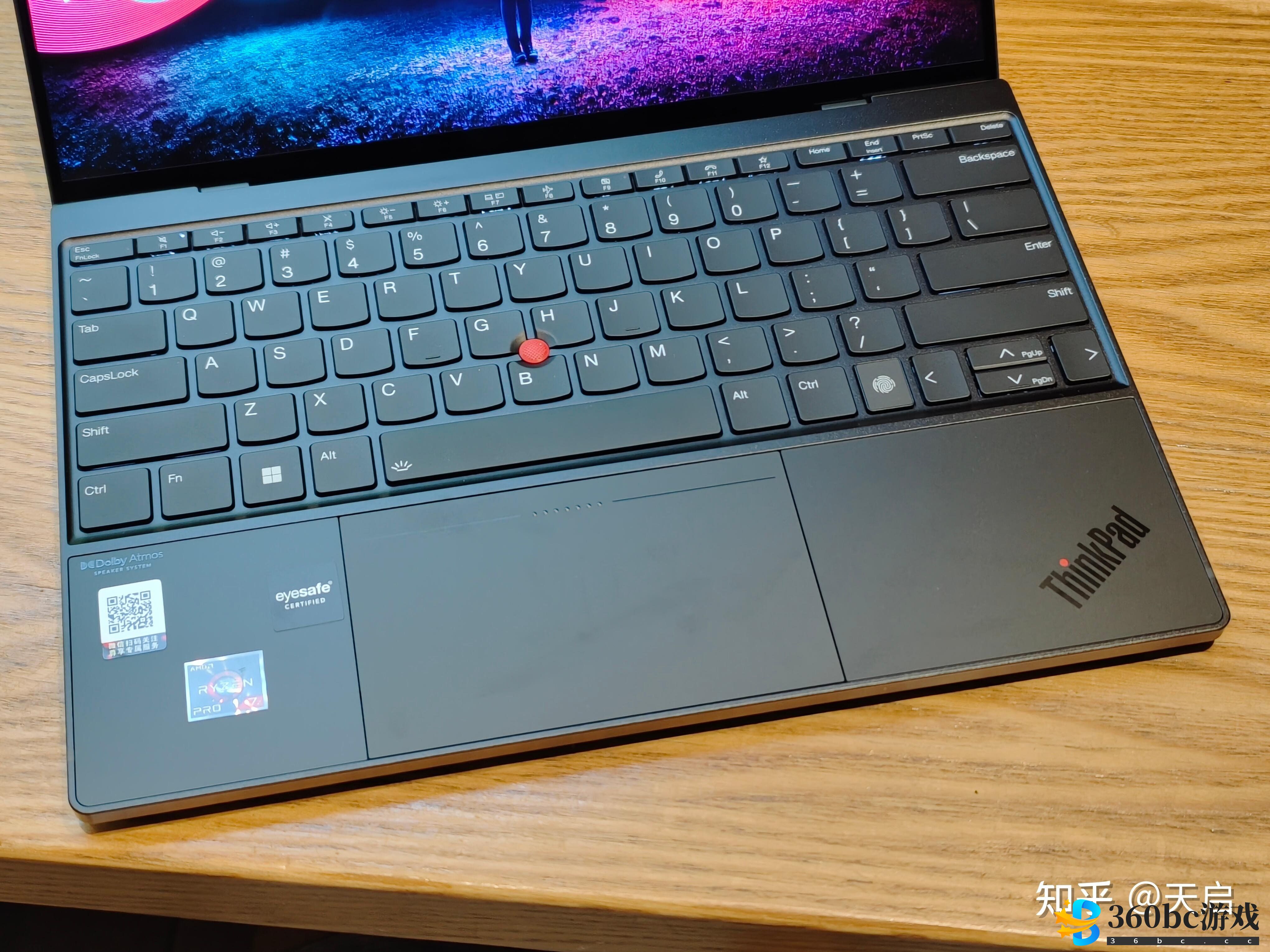 总的来说,个人认为这些调整里最不能接受的就是非全尺寸的方向键以及没有翻页键,希望后面能看到ThinkPad Z的拨乱反正吧。 ![]() 除了键盘,这次Z13上搭载的全新的触摸板&指点杆系统同样是我们关注的焦点。毕竟这是2014年一体式触摸板仓皇北顾后的又一次卷土重来,只不过技术已经换成了全域按压的触摸板+传感器小红点的组合,可谓是换了人间。那么这一套的实际使用体验如何呢? 个人的综合评价是,红点的定位体验表现很好,按键手感也不错,但是几乎丧失了盲操的可能性;触摸板使用体验提升巨大。 先来说说红点。我个人评价红点一般分为三个维度,定位准确性,三键的按键手感与盲操作便捷性。Z13上的红点系统在定位准确性上自然没有任何问题(毕竟都是新技术),三键的按键反馈手感虽然比不了现在已经逐渐推开的实体平面三键,但是Z13触摸板中的压电陶瓷已经能够只用很小的力触发,并且最终给出足够清晰的反馈。我认为按键体验也是可以接受的。这机器红点的问题,最终还是出现在无实体键导致的盲操作定位困难。我们在使用实体触摸板进行盲操作时,非常容易的就能分出我们的手现在放在哪一个鼠标按键上。而到了Z13的全域按压触摸板上,三键的标识只有光面处理出来的线和点了,我们失去了判断手在三键什么位置的依据,因此盲操时非常容易按错。实际上ThinkPad 2014年的一体式触摸板也有这个问题,只不过当时被巨大的出发所需力盖过去了,没啥人提。而到了Z13这个使用体验提升巨大的完全体上,这个问题就暴露出来了...因此,如果你和我一样是重度红点用户,我还是建议你谨慎选择Z13。 ![]() ThinkPad应该也意识到了红点在这机器上的使用频率会很低,因此同样再次搬出了失传已久的双击红点操作,只不过作用效果已经从当年的双击鼠标变成了现在的打开综合控制中心... 触摸板的体验相比ThinkPad去年在X1 Titanium上首发的体验好了非常多,玻璃的材质,更大的尺寸,更细腻的震动都是非常大的进步点。可以说,Z系列上的两个不同尺寸的触摸板,就是现在Windows笔记本触摸板的巅峰之作。 ![]() 接口方面,机身左侧,Z13搭载了一个支持USB 4的USB-C接口,机身右侧,则是一个同规格的USB-C和一个3.5mm耳机接口。机身侧面靠下位置的竖条,则是本机的wlan天线带。因为整机都是铝合金的(转轴部分都是),因此天线带就只能和手机一样外置了。我个人比较喜欢Z13把唯二的两个USB-C接口分置两侧的设计,因为这样可以在机身的任意一侧接入电源为机器进行充电,使用非常方便。而为了避开无边框的键盘,因此本机的3.5mm耳机孔只能布置的非常靠下。 整机2C一个耳机孔的设计显然不能说是充裕,不过如果ThinkPad这机器的目标真的是抓住消费人群,那这个接口数量就是正常水平了,不构成喷点,只是原本的优势自然也就没了) 今年Z13提供了FHD+ IPS非触摸/触摸,2.8k OLED触摸三种屏幕可选,国行大手一挥,全部都提供了顶配的2.8k OLED触摸屏幕,然而... ![]() 屏幕像素排列应该是RGB-Stripe的变种,这样的好处是不折损PPI,这是好事。 ![]() 问题还是出在触摸功能上,本机屏幕的触摸功能,也是通过在屏幕上方敷设一层金属网实现的,而这层金属网会导致我们常说的“网格屏”现象,并最终影响白底下的屏幕观感。 屏幕素质方面倒是还不错。 ![]() 用Display Cal软件搭配蓝蜘蛛X校色仪对屏幕进行测试,ThinkPad Z13上的这块屏幕的实测最大亮度为380.3尼特,对比度因为太高,已经超出了校色仪的检测范围。相比600nit的HDR激发亮度,在平时观看SDR内容时能达到的亮度才是我们消费者更加关心的。Z13的这块屏幕亮度表现还算可以。 ![]() 色域覆盖方面,这块屏幕拥有100%的sRGB色域覆盖,96.1&的Adobe RGB色域覆盖,99.9%的DCI P3色域覆盖,170.1%sRGB,117.2%Adobe RGB,120.5% DCI P3的色域容积,基本上盖满了自己标称的100%DCI-P3广色域,但是ThinkPad没有提供色域切换软件,因此屏幕始终只能在过饱和状态下显示,这是一个比较遗憾的地方。 ![]() ![]() 校色后,Z13的这块屏幕拥有ΔE平均0.42,最大1.18的成绩,色准表现非常不错。 ![]() 色温则相对稍微偏暖一点点,一直保持在6200K附近,均匀性做的不错。 ![]() 伽马值的成绩表现一般般,成绩虽然稳定,但是一直在偏高的2.6附近。 ![]() 同时,本机因为没有出厂校色与色彩管理,因此默认状态下的色准偏差比较大,基本上就是朝着最艳丽的方向进行显示,并且没法切换到sRGB这样的标准色域范围,用作内容消费来说问题不大,但是如果有进行内容创作的需求,这方面就会表现稍差。 ![]() 我手中的这台ThinkPad Z13搭载了来自AMD的锐龙 7 PRO 6860Z处理器,这是今年AMD基于锐龙 7 PRO 6850U,专门为ThinkPad Z13定制的一颗处理器,足见AMD对于Z13的重视程度。和原型一样,锐龙 7 PRO 6860Z同样采用了Zen3+架构与台积电的6nm工艺,拥有非常出色的能耗比。8大核16线程的设计也使得系统在运行时无需考虑大小核调度问题,拥有更高的效率。相比原型锐龙 7 PRO 6850U,6860Z的主要升级只是最高睿频从4.7Ghz提升到了4.75Ghz,实际上象征意义更大一些。 ![]() 作为One More Thing,这个定制版处理器自然还有定制款信仰贴纸)实乃充值AMD YES!信仰的最佳选择~ ![]() ![]() 理论性能部分,仍然是大家都很熟悉的CineBench R20/23测试,Z13的短时性能释放实际上是比较激进的类型,再加上今年Zen3+的单核性能又提升了一些,整体的CPU性能在这个级别的机器中,表现还是不错的。 