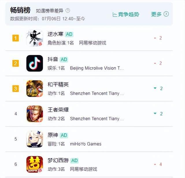 在这种创新的“不氪金”运营下,《逆水寒》手游流水反而一路高歌,曾经多次超越《王者荣耀》,如今依然稳定在畅销榜上。