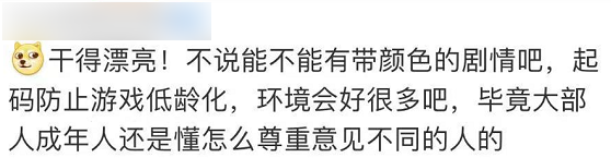 而在事情的另一头,是很多成年玩家对这一消息表示欣慰。 既然措施本身涉及到了年龄分级, 那 是不是意味着游戏尺度会变大,分级要到来?可以整点十八禁的内容了?