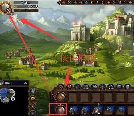 2、在城镇界面,注意是城镇界面,按住英雄的头像,拖动到左上角,然后就可以设定总督了;