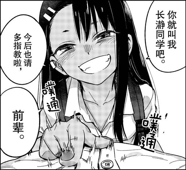 至此之后,长瀞同学缠上了前辈,经常以欺负前辈的方式表达自己的喜欢。比如前辈画画的时候,长瀞同学会主动担任模特,还做出各种撩人的动作诱惑前辈。等前辈画完之后,长瀞同学说要奖励前辈让他闭上眼睛,前辈误以为要接吻于是撅起嘴巴,结果被长瀞同学当面嘲笑!