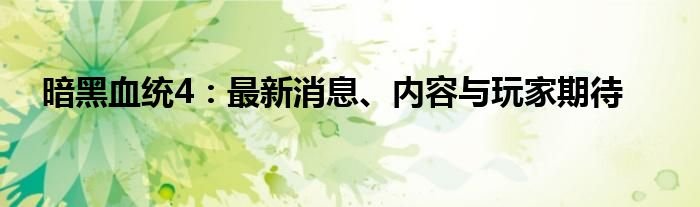 随着游戏行业的蓬勃发展,许多经典IP的游戏系列都在不断地推出新作。《暗黑血统》系列作为一款备受玩家喜爱的动作冒险游戏,其第四部作品《暗黑血统4》的消息自然也引起了众多玩家的关注。本文将为大家带来关于《暗黑血统4》的最新消息、内容以及玩家的期待。