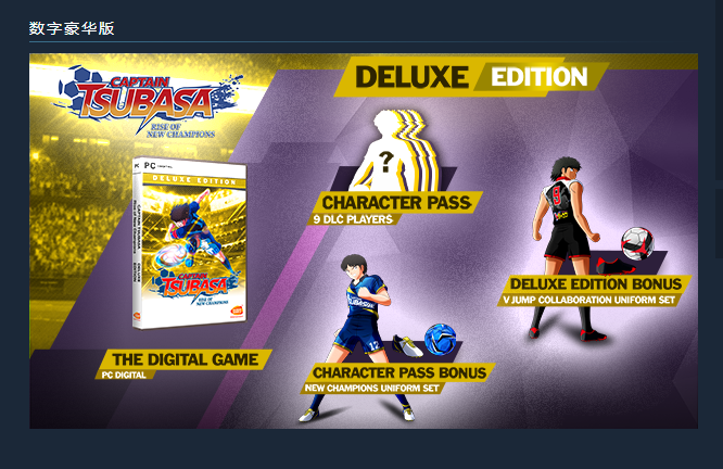 PC正版steam平台国区礼物,订单里 填写正确的steam加好友链接 ,同意steam好友申请收到游戏 【标准版】= Captain Tsubasa: Rise of New Champions - Month One Edition 本体无DLC 【豪华版】= Captain Tsubasa: Rise of New Champions - Deluxe Month One Edition