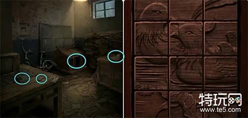 进入石洞用钥匙打开木门进入房间,先拿走灶台处的「火钳」和炕柜抽屉里的珍珠耳环,再用腕饰割开炕柜上的胶带拿到柜子里的木像和杂色蜡烛。