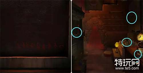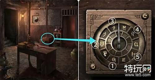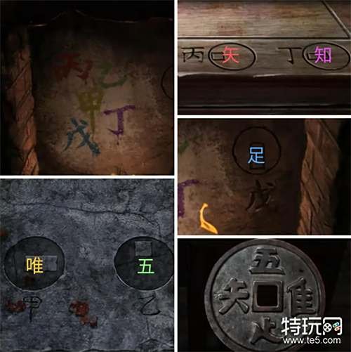 将木像放入灶台用火柴点燃,然后观察灶壁上的提示,接着结合外面桌子桌沿的凹槽内的铜钱和场景各处的提示获得密码唯五矢知足。