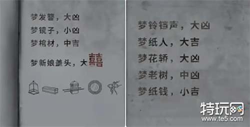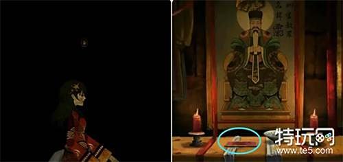 完成箱子里的皮影游戏(先记住左边出现的皮影,再到右边将其找出来,这里可以记住它们的特点,比如男;女;烟;喇叭;锣)获得铜镜,到纸人庙将其放在供桌上(镜面对准新娘)打开左侧的窗户拿到祈愿牌,最后出去将祈愿牌交给二爷爷触发剧情,第四章结束。 第五章 魂归 寅时 03:19 平旦