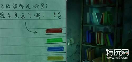 与申墨卿分开后点击并观察书架上发光的—统一零售价六元的—名字叫《谈招阴之物》的书,翻到最后一页可以获得一张提示纸条,接着打开窗帘观察对面楼窗帘的颜色(后面会用到)。