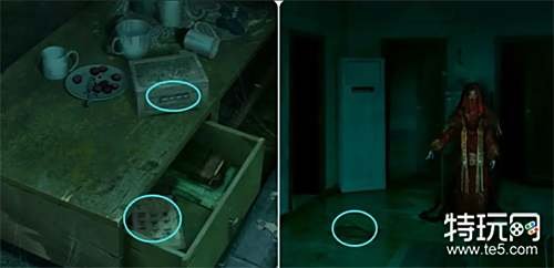 从卧室出来遇见鬼新娘,根据其指引转过身拿走藏在地板下的咒符,接着打开后面的冰箱拿走里面的除冰铲。