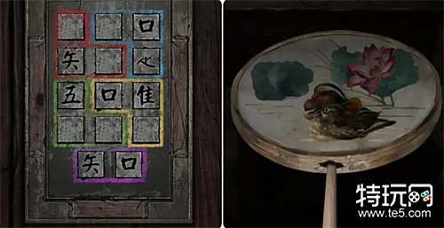 以申墨卿视角进入后面的纸人庙,通过手机观察纸人给的提示(相同颜色部分组成汉字)来到宗祠外面打开门口的箱子。 注:这里可以通过点击太极图调整汉字的位置,根据颜色来就是矣替子娘。