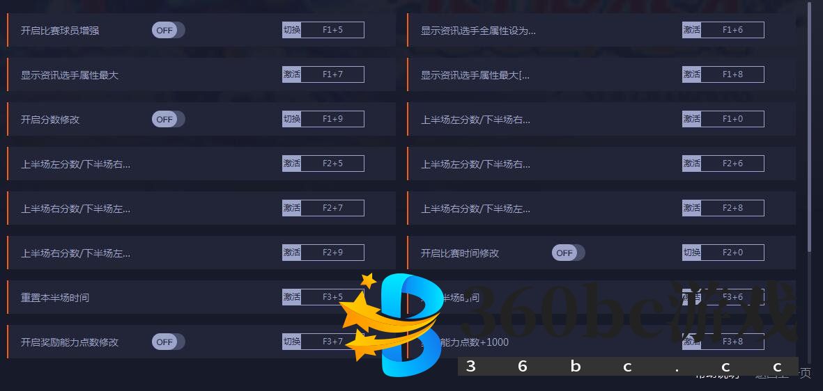 注意事项 1.适用于其他版本,使用根目录GameData文件夹内的CAPTAIN TSUBASA RISE OF NEW CHAMPIONS.exe启动游戏 2.开启比赛球员增强:比赛中时暂停[Esc],选择管理队伍,选择变更选手位置,选择选手,按F详细显示选手资讯时修改 3.分数[左/右]:以上半场分数位置为参考,下半场游戏会将左侧分数显示于右侧 4.开启奖励能力点数修改:在培育选单开启,选择培育选单,选择培育选手进行修改,最后选择玩家刷新奖励能力点数 5.开启PP点数修改:PP点数无限在PP点数增加或减少时生效 6.无冲刺比赛模式:可与属性最大使自身普通移动增快 1.先开游戏,再开修改器。 2.了解修改器使用说明。 3.开启修改器各主初始项再使用各子修改项[无主初始项则不用开启][主初始项:如开启...修改]。 4.使用修改项[无法开启查看修改器使用说明]。 5.键位功能里数字键一般为字母键上方。 6.功能说明前按钮可自定义修改键位,修改器目录下生成的hotkey文件为自定义键位保存文件。 F1+5 开启比赛球员增强 F1+6 显示资讯选手全属性设为100 F1+7 显示资讯选手属性最大 F1+8 显示资讯选手属性最大[不含移速] F1+9 开启分数修改 F1+0 上半场左分数/下半场右分数+1 F2+5 上半场左分数/下半场右分数为0 F2+6 上半场左分数/下半场右分数最大 F2+7 上半场右分数/下半场左分数+1 F2+8 上半场右分数/下半场左分数为0 F2+9 上半场右分数/下半场左分数最大 F2+0 开启比赛修改 F3+5 重置本半场时间 F3+6 结束半场时间 F3+7 开启奖励能力点数修改 F3+8 奖励能力点数+1000 F3+9 奖励能力点数最大 F3+0 开启PP点数修改 F4+5 PP点数不减 F4+6 PP点数无限 F4+7 无冲刺比赛模式 《小将:新秀崛起》让你在模式中重温经典场景,以队长小翼为主角,将通过两种模式让玩家感受这款足球游戏,通过几种在线模式进行竞争,以获得奖杯和奖励, 以上就是《足球小将:新秀崛起》十六项修改器的全部内容了,游戏爱好者为您带来最实用的辅助软件,让你一个游戏小白也能够上手该游戏,享受游戏的乐趣,快快收藏吧,更多精彩不容错过! (责任编辑:蚂蚁团队) |