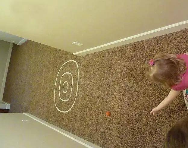 纸杯底部数字和圈中数字对应,锻炼幼儿的反应能力,在玩的同时学数学,有心的家长还可以玩出多种花样。 3. 推球游戏