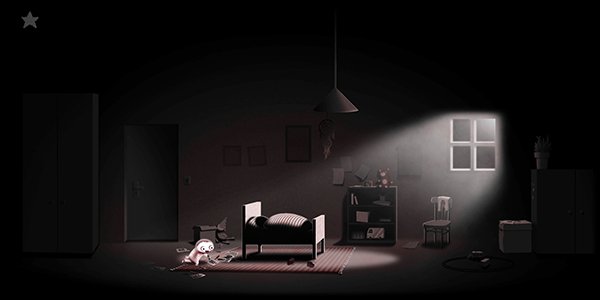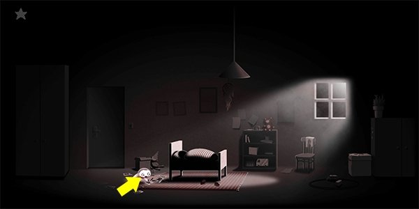 2、接着等他入睡后,游戏会自动开始切换场景,来到下方场景后,点击小人让他起床。