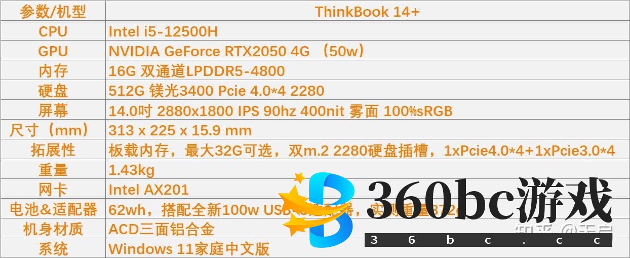 天启:全能新标杆——ThinkBook 14+/16+速览体验 之前在ThinkBook 14+/16+上市之前,实际上我已经对这两个机型做了最初步的解读与分析。不过当时因为机器都是工程机,没有对性能方面做过多解读,更多的是针对模具本身的设计和做工进行评价。现在这两型机器都已上市,我找朋友借来了一台量产版的中配ThinkBook 14+来做进一步的性能评测。上篇文章链接也已经附上,如果对这机器一点不了解可以去看看。 ![]() 真的是京东客服培训有问题...这机器只有人脸识别,没有指纹识别! ![]() 如图所示。 ![]() 我手上的这个配置应该是首批四个sku里最甜的一个。6k价位出头能搞到H45+RTX2050+2.8k 90hz屏幕的组合,基本上是文能办公写代码,武能游戏剪视频的选择了。 因为量产版上市之前PM力挽狂澜,ThinkBook 14+最后全系标配了2.8k 90hz 400nit屏幕,兼顾了清晰度,流畅性与高亮度,可谓是各种意义上的好屏幕了。结果就是核显版ThinkBook 14+也能说自己拥有同价位的最佳屏幕了,当然,素质还是得看看的。 ![]() 用DisplayCAL软件搭配蓝蜘蛛X校色仪对屏幕进行测试,这块屏幕的实测最大亮度为393.3尼特,对比度1446.2:1,相比400nit与1500:1的标准都只差一点点。考虑到它本身标称素质的优秀,这块屏幕的竞争力无疑是非常强的。甚至秒杀了万元旗舰X1 Carbon上的那块2.2k屏(划掉) ![]() 色域覆盖方面表现也很不错,本机的屏幕覆盖了99.6%的sRGB,基本上是盖满了,强就一个字... ![]() ![]() 校色后,因为屏幕本身的色域覆盖很不错,因此最大ΔE只有1.11,平均ΔE也只有0.34,相比我之前测得工程机上的2.2k 60hz屏幕还有一定进步,完全适用于各种图像处理,视频剪辑类工作,这也与本机的全能定位相匹配。 ![]() 色温偏移在10%以上亮度时几乎没有,表现非常不错,色温本身也在适中的6700K附近,属于中偏稍冷,符合亚洲人喜好,但也不会出现过冷/过暖影响观感的情况。 ![]() 更让人欣喜的是校色前的表现。我手里这台机器的屏幕在校色前也有最大ΔE4.25,平均ΔE1.49的成绩,最大ΔE4.25看似吓人,但实际上... ![]() 嗯,红色以一己之力拉动了整个ΔE的数值...这个成绩实际上相当优秀,日用基本上无需校色,到手即可用。 ![]() CPU和之前的工程机一样,i5-12500H,4性能核+8能效核的组合。规格方面之前的文章已经详细介绍过,此处略去不表。直接来看性能: ![]() ![]() 首先是大家都很熟悉的CineBench R20/23测试,得益于ThinkBook 14+较为激进的性能释放和今年12代酷睿的强劲性能,R23多核成绩已经突破了13700分,这已经是比上一代i7-11800H或R7-5800H搭载在游戏本上的时候更高的成绩了...足见今年12代酷睿i5在多线程性能上的巨大提升...虽然实际使用的时候小核能被调用的情况相当少,但是能刷分,哦不对,战未来啊! 不过还有一个有意思的事实是...今年的12代CPU格外吃调教,比如轻薄本上首发i7-12700H的机械革命无界16,其CPU的R23得分只有约10380分,直接被i5的ThinkBook 14+倒挂,可谓是惨不忍睹... ![]() R15的30轮循环表现也很不错,多核最高分2105,前7次测试成绩依次下降,直到第8次开始稳定在1800分附近,对于ThinkBook 14+这种偏向便携的全能本来说,想达到这个成绩已是相当不易。 ![]() 而在具体应用的CPU测试中,我们选择了Blender的模型渲染作为参照基准。搭载12代酷睿i7-12500H的ThinkBook 14+仅用了189s即完成了渲染,速度非常惊人。 ![]() 和之前评测过的几型产品进行对比,可以发现就算是搭载在轻薄本ThinkBook 14+的i5-12500H,其渲染能力也能强过上一代游戏本上的i7-11800H或者R9-5900HX,可谓是实力强劲。 ![]() 核显也是一样,i5-12500H标配了80EU的核显,相比去年的32EU,规格和性能双双大幅上升,只不过这只是相对自己而言的了...今年的Ryzen 6000系列上那最高12CU的超强核显,Intel是真的难以望其项背... ![]() ![]() 为买核显版的同志们跑了一组分数,TS1349,FS4723,搭载LPDDR5-4800的ThinkBook 14+的核显成绩相比去年...基本没进步啊... ![]() 当然...相比搭载上一代H45的产品来说,进步不小... ![]() 而独显方面就值得好好说道说道了...ThinkBook 14+在联想笔记本中率先搭载了NVIDIA RTX2050独显。拥有2048个CUDA流处理器,4GB,64bit位宽的显存。支持光追与DLSS,同时还有NVENC与NVDEC模块,剪视频的性能相比这类机型原来搭载的MX450也有大幅提升。尤其是显存容量,4G显存意味着在实际的游戏中爆显存场景会大幅减少。比较可惜的是,这卡毕竟是MX系列升杯而来,因此不支持视频输出,也就是说,搭载RTX2050的机型肯定是不会支持独显直连的。 ![]() ![]() 显卡的TS得分3808,FS得分9832,这个理论成绩比当年的GTX1650稍高,因此有人说RTX2050是加强光追版GTX1650不是没有道理的.... ![]() 可以看到,RTX2050的理论性能实际上是不差的...这张显卡的主要短板,实际上是显存位宽随着自己的亲爹MX570被阉割到了64bit,因此RTX2050的显存带宽会成为主要瓶颈。想缓解这个问题对游戏帧数的影响,最好的方法就是将游戏的贴图质量调低,这样显存带宽的瓶颈就会不那么突出,这点在我们后面的游戏测试中也会有所体现。 ![]() 内存方面,我手里的这台ThinkBook 14+搭载了双通道板载16G的LPDDR5-4800内存。没有用5200mhz的原因主要是Intel的平台如果要上LPDDR5-5200,必须搭配HDI主板,HDI因为成本较高一般只用在YOGA9这种旗舰机种上,因此ThinkBook 14+就无缘享受了。相对于DDR5,LPDDR5的的特点仍然是能耗更低但是延迟较高。因此续航和游戏性能暂时只能二选一。 对于16G不满意的同学也无需担心,