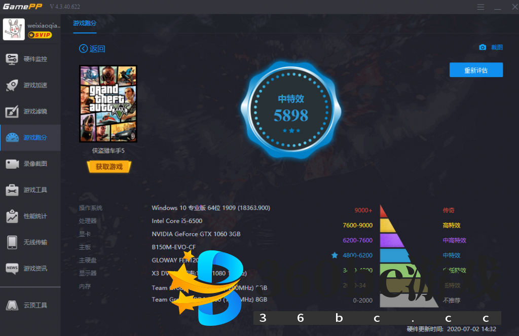 很多电脑小白都不知道自己的电脑配置能玩那些游戏,然后就会在贴吧、百度知道、知乎等等网站上进行提问“我的电脑配置能玩那些游戏呢?”这种问题,然后就会得到各路大神的解答,有说你的配置不能玩的,同时也有有说你的配置能玩的,这样就无法分辨到底能不能玩,到最后的结论是去steam或者Epic等平台上买了之后玩一把才能知道能不能玩这款游戏了,如果不能玩反正2个小时内可以退款嘛。 ![]() 这里小编给大家推荐一个简单有效可以直接知道自己电脑配置能玩哪些游戏,或者开启什么画质特效最流畅的软件——游戏加加(https://gamepp.com/) 游戏加加官网在线模拟跑分 最近游戏加加新增了官网页面,如果不知道这个软件的小伙伴们可以去百度搜索游戏加加 即可,直接点击官网页面里的模拟跑分,然后输入搜索你想玩的游戏,随后选择你电脑的硬件配置,就会根据你选择的电脑配置进行跑分评估,根据跑分结果就可以直接的知道自己的电脑能不能玩这款游戏和推荐的画质特效了,下面将详细给你们介绍。 参照下图 1.点击模拟跑分; ![]() 2.输入将要测试的游戏进行选择,下面以荒野大镖客2为例; ![]() 3.选择您的电脑配置或者是需要模拟的电脑配置信息后,点击模拟跑分; ![]() 4.跑分完成后,根据评估结果就可以看出当前电脑或者模拟的电脑是否能玩这款游戏,开什么样的画质特效更舒适。 ![]() 游戏加加客户端游戏跑分 在网页在线模拟跑分的情况下如果没有你的硬件配置,可以直接进入游戏加加主页官网下载游戏加加(https://gamepp.com/),下载成功过后在客户端选择游戏跑分板块,和之前网页在线跑分的操作一样, 输入将要测试的游戏进行选择 ,游戏加加将针对当前电脑的硬件配置进行评估,然后得出评估结果就可以清楚直观的知道能不能玩这款游戏和推荐的画质特效了 。 操作步骤如下: 1.下载安装游戏加加; ![]() 2.打开游戏跑分版块后,输入需要测试的游戏进行游戏跑分; ![]() 3.根据跑分结果就可以直观的知道当前电脑能不能玩这款游戏和推荐游戏画质特效了; ![]() 以上就是给大家分享的在不知道自己电脑配置能玩哪些游戏的情况下进行判断,提前对电脑硬件进行评估,知道结果就可以考虑要不要买游戏了。 (责任编辑:蚂蚁团队) |
