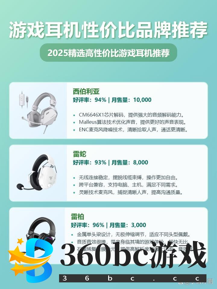 2025年想畅玩电竞,一款好的游戏耳机绝对是必不可少的装备。但面对市面上琳琅满目的选择,是不是感觉无从下手?音质好不好?佩戴舒不舒服?麦克风清晰吗?别慌,这些问题我懂!毕竟谁也不想花冤枉钱买个“听个响”的耳机,影响游戏体验。2025年游戏耳机选购,不光要看参数,更要看实际的游戏表现和使用感受。 ![]() 所以,这次我就针对大家在意的音质、佩戴舒适度、麦克风效果这些关键点,精心挑选了几款在2025年备受关注的游戏耳机。它们在音质上的表现如何?是否真的好用?又有哪些特点?别急,接下来就为大家详细分析这几款高性价比的游戏耳机,看看它们各自的优势,希望能帮助你找到最适合自己的那一款! 热售款:西伯利亚K03 西伯利亚K03这款耳机,音质方面确实下了功夫!它通过了Hi-Res金标认证,搭配CM6646X1芯片,解码能力很能打。特别是那个FPS音效一键开启功能,听声辨位更准,玩射击游戏那叫一个爽快,感觉就像开了物理外挂! ![]() 麦克风方面,K03也毫不含糊。它采用ENC环境降噪技术,加上AI智能通话降噪,能有效过滤杂音,语音通话清晰多了。而且,这个单指向麦克风,人声拾取那叫一个精准,再也不怕队友听不清我说啥了。 ![]() 佩戴舒适度上,这款耳机也考虑得很周到。Airy D工学设计加上仿生蛋白皮耳罩,挺柔软透气的,长时间戴着也不会觉得夹头。还有那个可伸缩合金支臂,可以根据自己的头型调节松紧,细节好评! ![]() 西伯利亚(XIBERIA)K03有线USB金标7.1游戏耳机电竞耳麦头戴式吃鸡FPS耳机带线控电脑办公麦克风冰川白 ¥189 京东月销量2000好评率96%无理由退换京东配送 购买 热售款:雷蛇旋风黑鲨V2极速版 雷蛇K2这款耳机颜值确实在线,白色外观挺吸睛。无线连接用起来是真的方便,摆脱线材束缚,用了就回不去了。而且它支持2.4G和蓝牙三模连接,各种设备都能轻松应对,续航也给力,不用老是惦记着充电。 ![]() 这款耳机在音质方面也下了功夫,Razer Triforce 50毫米镀钛驱动单元,高音明亮,低音浑厚,游戏体验更沉浸。它还搭载了THX Spatial Audio 7.1环绕声技术,空间感十足,听声辨位更精准,能让你在游戏中快人一步。 ![]() 当然,佩戴舒适度也很重要。这款耳机采用了轻量化设计,重量约280克,长时间佩戴不会有压迫感。舒适柔软的隔音耳罩,可以有效隔绝外界干扰,让你更专注于游戏。Razer HyperClear灵晰技术宽频带麦克风,通话清晰,沟通更顺畅。 ![]() 雷蛇(Razer)旋风黑鲨V2极速版 无线蓝牙头戴式电竞游戏耳机耳麦 白色 被动降噪 三角洲EQ调节 CSGO 吃鸡 ¥779 京东月销量3000好评率94%无理由退换京东配送 购买 热售款:雷柏VH850 雷柏VH850这款耳机,连接方式挺多样的,蓝牙5.3、2.4GHz无线和3.5mm有线都支持,可以根据不同场景灵活切换。而且它还采用了物理双音腔结构,听声辨位更准,声音也更清晰了,对于游戏玩家来说,这点非常重要。 ![]() 这款耳机的佩戴舒适度也值得一提,包耳式大耳罩加上柔软材质,戴久了也不会觉得难受,而且还能有效降低环境噪音。再加上可拆卸的全指向降噪麦克风,语音沟通也清晰多了。 ![]() 音质方面,这款耳机采用了石墨烯材质复合膜50mm钕磁发声单元,解析度和功率都没得说,听歌、游戏都能hold住。还有RGB背光装饰,灯效也挺炫酷的,1200mAh电池续航也还行,性价比可以。 ![]() 雷柏(Rapoo)VH850三模无线游戏耳机头戴式电竞三角洲FPS 明末渊虚之羽游戏专用听声辨位打瓦 多设备兼容 黑色 ¥229 京东月销量600好评率96%无理由退换京东配送 购买 热售款:赛睿Arctis Nova1 这款赛睿Arctis Nova 1游戏耳机,音质确实不错,40毫米驱动单元带来的高音清澈,低音也足够给力,玩游戏的时候沉浸感很强。而且它还搭载了SONAR专业调音系统,听声辨位更准,战场局势一手掌握。 ![]() 不得不说,这款耳机佩戴起来是真的舒服。AirWeave记忆棉耳罩柔软透气,可以旋转调节,加上轻量化设计,久戴也不会觉得有负担。头梁的伸缩设计也很人性化,各种头型都能轻松驾驭。 ![]() 还有这个ClearCast Gen2麦克风,降噪效果是真的好!嘈杂的环境下也能清晰地传递语音,和队友沟通再也不怕被干扰了。而且耳机还配有便捷的音量调节和麦克风静音按钮,操作起来非常方便。 ![]() ¥50 赛睿(SteelSeries)寒冰Nova1白有线3.5mm游戏电竞头戴式耳机 AI降噪麦克风FPS7.1环绕声LOL吃鸡CS 适配三角洲行动 ¥339 京东月销量300好评率94%无理由退换京东配送 购买 热售款:ROG降临TWS Speednova真无线 入耳式游戏耳机 ROG降临TWS在连接上确实做得不错,它支持蓝牙5.3和2.4GHz双模,尤其是2.4GHz模式,延迟降低了约25%,游戏音画同步这块拿捏得死死的。而且它兼容性也挺好,手机、电脑、PS5都能用,还支持混合多点连接,能同时连两个设备,切换起来方便多了。 ![]() 这款耳机的主动降噪也值得说说,ANC自适应主动降噪能有效消除环境噪音,沉浸感直接拉满。而且它还有通话降噪,保证语音沟通清晰无干扰,开黑的时候再也不怕被环境音影响了。它的续航也还可以,单次续航有11.5小时,配合充电盒总续航能到46小时,重度用户也够用了吧。 ![]() 外观上,ROG降临TWS也挺有特点,耳机和充电盒都有Aura RGB灯效,电竞氛围直接拉满。音质方面,它采用了Dirac Opteo技术,细节和定位都挺精准的,玩游戏听个响完全够用。还有IPX4级防水、AI降噪麦克风这些小功能,也算是加分项了。 ![]() ROG降临TWS Speednova真无线入耳式 游戏耳机 蓝牙无线 游戏手机配件 运动耳机主动降噪