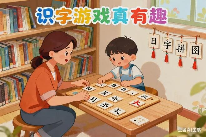 中班(4-5 岁) 11. 字卡钓鱼 游戏准备:10-12 张字卡(“花、草、树、木、虫、鱼”),每张字卡别上回形针;一根小竹竿,线端系一块磁铁当 “鱼竿”。 游戏玩法:把字卡散在地上当 “鱼”,幼儿手持 “鱼竿” 去 “钓” 字卡,钓到后读一读。家长可以规定 “今天钓带‘草字头’的字宝宝”,增加识字针对性,钓到符合要求的字卡得分。 12. 词语接龙识字 游戏准备:15 张常用双字词的字卡(如 “太阳、月亮、星星、天空、白云”),拆分单字。 游戏玩法:家长先拿出 “太” 字卡,说 “太阳的‘太’”,幼儿要找出能和 “太” 组成词的 “阳” 字卡,接 “太阳的‘阳’”。接着从 “阳” 字开始,尝试接下一个词(如 “阳光” 的 “光”),依次接龙,边接边读字。 13. 字卡分类小管家 游戏准备:20 张字卡,包含动物类(“猪、牛、羊”)、植物类(“桃、梨、荷”)、交通工具类(“汽、车、船”),三个不同颜色的篮子当 “分类箱”。 游戏玩法:幼儿当 “小管家”,把字卡按类别放进对应的篮子里,放的时候要说出 “‘猪’是动物,放进动物箱”。家长可以故意放错一张,让幼儿纠正,巩固对字的理解和分类能力。 14. 拼音识字对对碰 游戏准备:12-15 张字卡(“爸、妈、哥、姐、学、校”),以及对应的拼音卡片(“bà、mā、gē、jiě、xué、xiào”)。 游戏玩法:把字卡和拼音卡打乱,幼儿和家长各拿一半卡片。轮流出示卡片,比如家长出示 “bà”,幼儿要找出 “爸” 字卡配对,说 “‘bà’对应‘爸’”。配对成功后放在一起,最后比谁配对得多。 15. 故事中的字宝宝 游戏准备:一本幼儿绘本(如《小兔乖乖》),提前标出故事中的高频字(“小、兔、门、开、来”),制作对应的字卡。 游戏玩法:家长讲故事时,讲到标红的字就停下来,出示字卡让幼儿读。讲完后,把字卡散在桌上,幼儿回忆故事内容,找出出现过的字卡,说说在故事里的意思,加深记忆。 16. 字卡跳房子 游戏准备:在地上用粉笔画出 “房子” 格子,每个格子写一个字(“前、后、左、右、上、下、东、西”),共 8-10 个格子。 游戏玩法:幼儿边跳格子边读格子里的字,家长可以发指令 “跳到‘左’字格子”“从‘前’跳到‘后’”。熟练后增加难度,比如跳错字要退回重新跳,锻炼反应和识字能力。 17. 偏旁部首找朋友 游戏准备:15 张字卡,包含相同偏旁的字(如 “氵” 旁:“江、河、湖、海”;“亻” 旁:“你、他、们”),以及偏旁卡片(“氵、亻”)。 游戏玩法:家长出示 “氵” 偏旁卡,说 “这是三点水,和水有关”,让幼儿从字卡中找出带 “氵” 的字,放在偏旁卡旁边,组成 “朋友组”,并读一读 “江、河、湖、海都和水有关”。同理练习其他偏旁。 18. 猜字谜语 游戏准备:10 个简单的字谜和对应的字卡(如 “一点一横长,一撇到南洋 ——‘广’”“一人一张口,下面长只手 ——‘拿’”)。 游戏玩法:家长说谜面,幼儿猜字,猜对后出示字卡验证,一起分析谜面和字的关系。幼儿熟悉后可以尝试编简单的字谜(如 “像耳朵的字 ——‘耳’”),增加趣味性。 19. 字卡接龙走迷宫 游戏准备:用粉笔在地上画一个简单迷宫,迷宫路径上写 10-12 个字(“出、入、左、右、前、进、退、停”),终点放一个小奖品。 游戏玩法:幼儿从起点出发,边走迷宫边读脚下的字,读错要退回重新走,顺利读完所有字到达终点就能获得奖品。可以分组比赛,看谁最快走出 “识字迷宫”。 20. 看图猜字编故事 游戏准备:8-10 张带图画的字卡(如 “鸟、飞、树、林、山、水”),图画要能体现字的含义。 游戏玩法:家长出示一张字卡(如 “鸟”),幼儿先猜字,再根据图画和字编一句故事(“小鸟在天上飞”)。接着用 “飞” 字卡继续编,“飞呀飞,飞到大树上”,依次用多个字卡串联成小故事,锻炼识字和表达能力。