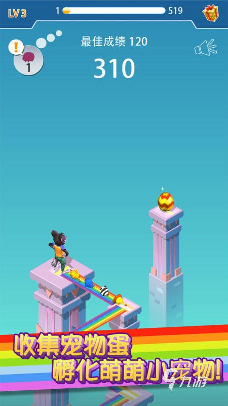 《恋爱跳一跳》这款游戏特别适合情侣来玩哦!不管是朋友还是情侣都可以进行一同参与。游戏时需要双方进行控制角色的跳跃距离,通过不断的跳跃比拼增加彼此的默契与好感度。游戏画面设计富有色彩而生动,还有柔软度爆满可爱的游戏角色, 欢快而又沉浸式的游戏音乐效果带给玩家绝无仅有的游戏感受。 3、《彩虹跳一跳》