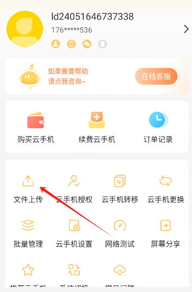 - 在云手机管理界面中,点击“上传”按钮,将想要安装的游戏安装包上传至云手机。