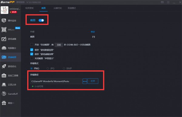 2、打开游戏滤镜开关,选择您需要使用的AI游戏滤镜;(请设置正确的存储路径,错误的存储路径也会导致游戏加加AI滤镜失效)