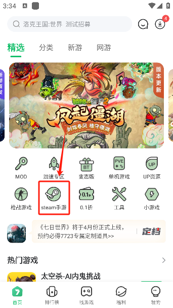 7723游戏盒子是一款实用的游戏资源下载软件,它里面提供了各种类型的游戏供玩家选择,而且包含了各种修改版和up主自制的游戏,通过软件用户基本上可以获得所有的游戏,还设有各种游戏社区供玩家去讨论,更有多种专题栏目等你来解锁哦,感兴趣的朋友们快来下载了解一下吧! 1、打开游戏点击顶部的分类进入页面中