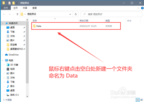 点击打开捏脸预设文件夹,新建一个【Data】文件夹,如图所示: