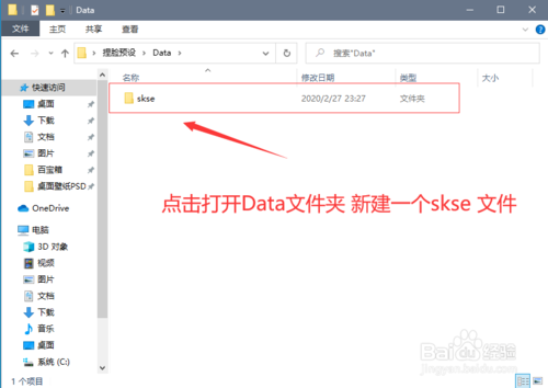 点击打开Data文件夹,新建一个【skse】文件夹,如图所示: