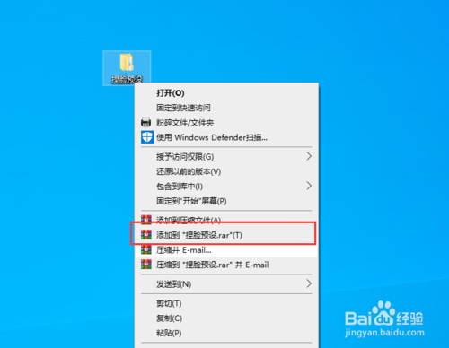 粘贴完成后,关闭文件夹,鼠标右键点击桌面上的【捏脸预设】文件夹,选择【添加到"捏脸预设.rar】,添加文件到压缩包,如图所示: