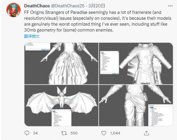 除了PC端外,《起源》在每个平台上都存在严重的性能问题。而根据推特用户@DeathChaos25根据游戏解包后的内容,忍者小组游戏制作时未对角色模型进行优化,此举大概率是造成如今情况的罪魁祸首。《起源》角色模型未优化程度之离谱,非常普通的杂兵怪小蝙蝠,几何模型大小高达30MB,而boss模型更复杂自不用多说,达到了惊人的90MB。这还仅仅是几何模型的大小,算上纹理等其他3D建模内容,《起源》角色模型的问题可想而知。该爆料推特底下网友吐槽,小蝙蝠超过了30万多边形,而最近的3A游戏人物模型仅仅只有10-15万的多边形,而自己的GTX3090显卡甚至hold不住区区一件皮衣。