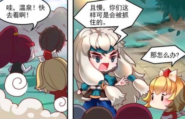 第二张图,韩信一听成吉思汗说妲己妹妹她们去泡温泉了,瞬间膨胀了起来:“你这家伙怎么不早说!害我差点就错过了这么美丽的风景,孙膑快开二技能加速!”成吉思汗把韩信拦了下来:“慢着!你们难道就这么明目张胆的过去?不被发现才怪!”韩信一听觉得很有道理,可是怎样才能不被发现呢?