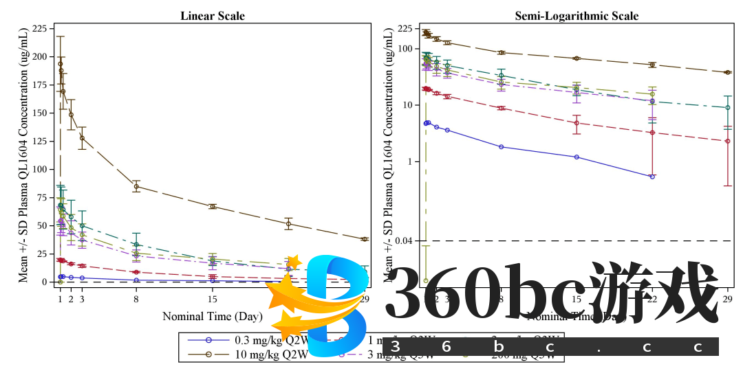 艾帕洛利单抗疗效泳道图 04 药动/药效学结果 在0.3 mg/kg至10 mg/kg剂量范围内,艾帕洛利单抗的半衰期(T1/2)为3至11天,药物暴露与剂量呈线性关系,如下图。