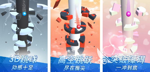 在多彩的页面中,玩家需要帮助小球完成闯关。小球跳跃的方向变化规则比较简单,玩家需要点击屏幕两侧进行不同方向的跳跃,也是在这种动态平衡的控制中保持小球安全的穿越通道。通道中央还会有一些随机散落的金币,当小球经过的时候,这些金币会自动被玩家纳入囊中。当小球撞到边缘的时候,那么本局游戏就会结束。 5、《高台跳球》