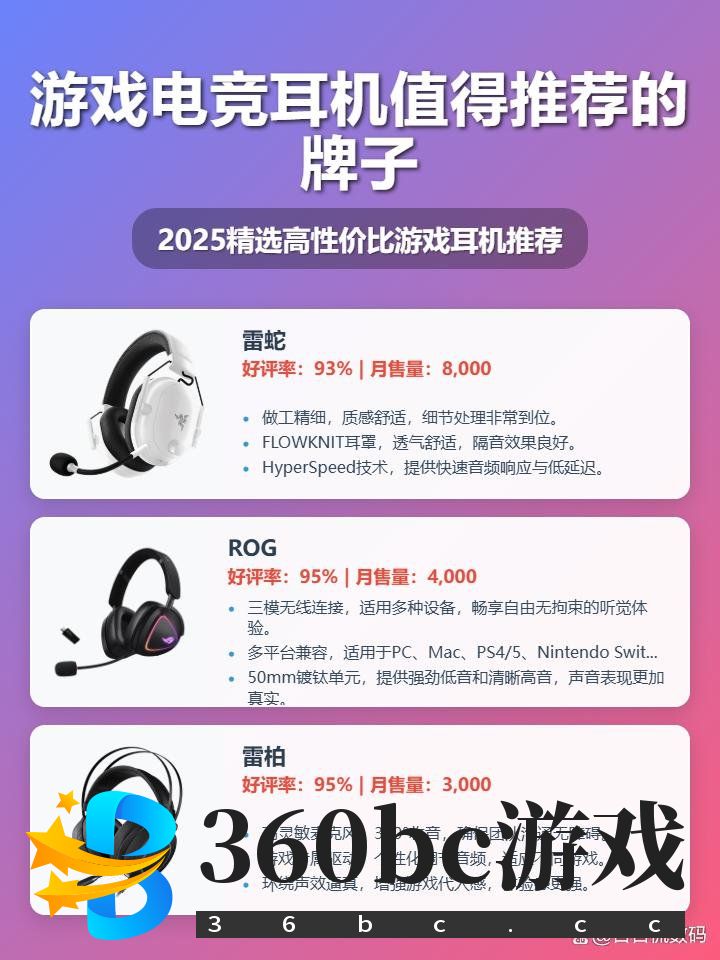 各位游戏爱好者们,面对市面上琳琅满目的游戏电竞耳机,是不是挑花了眼?别担心!“XX牌子的游戏电竞耳机质量怎么样”、“XX牌子的游戏电竞耳机好用吗”、“XX牌子的游戏电竞耳机值得买吗”,相信这些问题一定困扰着你。为了解决大家的选购难题,我们精心准备了这份《2025年游戏电竞耳机选购攻略:精选排名前十名品牌》。 ![]() 当然,耳机这东西,每个人需求不一样,有人追求音质,有人看重佩戴舒适度,还有人喜欢炫酷的外观。所以,结合自身的游戏习惯和预算,选择一款适合自己的耳机才是王道。接下来,我将结合十个品牌的特点,以及它们热销款的亮点,为大家分析一下,相信看完之后,你一定能找到心仪的游戏电竞耳机! 热售款:雷蛇 旋风黑鲨V2专业版Pro 雷蛇旋风黑鲨V2专业版,这耳机的确有点意思!它配备了HyperClear超清晰麦克风和Titanium 50毫米驱动单元,语音沟通清晰,音质也足够给力。再配合多种EQ模式,无论是玩游戏还是听音乐,都能找到适合自己的声音风格,满足各种场景需求。 ![]() 这款耳机采用2.4GHz无线连接,响应速度快,延迟低,让你在游戏中快人一步。而且它还支持蓝牙连接,轻按两下就能在两种模式间切换,用起来非常方便。它还兼容Xbox、PC、NS、PS5等多平台,一个耳机就能搞定所有设备啦。 ![]() 不得不说,佩戴舒适度是真不错。柔软的海绵皮革耳罩,加上适中的重量,长时间佩戴也不会觉得累。而且,这款耳机续航也很顶,满电状态下能用很久,即使没电了,也能通过有线连接继续战斗,完全不用担心电量问题,这设计确实贴心。 ![]() 雷蛇(Razer)旋风黑鲨V2专业版Pro 2.4G+蓝牙 无线头戴式电竞游戏耳机耳麦 被动降噪 白色 三角洲EQ调节 CSGO ¥1085 京东月销量3000好评率94%无理由退换京东配送 购买 热售款:ROG 棱镜2无线头戴式游戏耳机 ROG棱镜2这款耳机,特别值得一提的是它的三模连接,无线、蓝牙、有线全都有,不管是PC、手机还是游戏机,都能轻松应对。而且,它的SpeedNova无线技术确实给力,延迟低又稳定,玩游戏的时候,声音几乎是同步的,再也不用担心卡顿掉线了! ![]() 不得不说,这耳机的佩戴感也很重要,轻量化设计确实舒服,只有318g,戴久了也不会觉得压头。而且,它还配备了50mm镀钛振膜大尺寸发声单元,玩游戏的时候,听脚步声、枪声,那叫一个清晰,感觉自己身临其境一样,沉浸感很强。 ![]() 这款耳机在音效方面也下了功夫,7.1环绕音效定位精准,听声辨位不在话下,特别是玩FPS游戏,简直是物理外挂。再加上它那超宽频麦克风,语音沟通清晰无噪音,和队友交流更顺畅。还有那炫酷的AuraSync灯效,简直是RGB爱好者的福音。 ![]() ¥60 ROG棱镜2 头戴式无线游戏耳机 三模连接 Speednova技术 轻量化 游戏电竞耳机环绕7.1音效 3.5mm暗夜黑 ¥1299 京东月销量1000好评率97%无理由退换京东配送 购买 热售款:雷柏 VH160 雷柏VH160这款耳机,说实话,百元内的价位能有7.1虚拟环绕音效,确实挺吸引人的。在游戏里听声辨位会更清晰,提前预判,还是很有优势的。而且它还带RGB灯效,玩游戏的时候氛围感直接拉满。 ![]() 这款耳机搭载了50mm的大声场单元,无论是枪战还是爆炸场面,声音听起来都更有冲击力,沉浸感相当不错。再加上全包耳式设计,能减少外部噪音干扰,玩游戏更专注。 ![]() ENC降噪麦克风必须夸一下,和队友语音的时候,声音清晰多了,听不见乱七八糟的背景噪音。而且这麦克风还是360°全指向的,收音效果更棒。当然,它还有配套的驱动,可以根据不同游戏类型自定义音效,玩起来更带感。 ![]() 雷柏(Rapoo) VH160有线游戏耳机 三角洲行动fps吃鸡听声辨位打瓦头戴式电竞专用耳机虚拟7.1声道降噪麦克风 ¥69 京东月销量600好评率96%无理由退换京东配送 购买 热售款:樱桃HC2.2电竞耳机 樱桃HC2.2电竞耳机在佩戴舒适性上做得不错,宽厚的头梁搭配硅胶气垫,能有效降低压迫感。全包耳设计加上宽大的耳罩,长时间佩戴也能保持舒适。而且头梁长度可调,连接处采用金属材质,轻松调节到合适的尺寸。 ![]() 这款耳机在音效方面也有亮点。50mm驱动单元,频响范围在20Hz~20KHz,能提供不错的音质。重要的是,它支持虚拟7.1声道,玩FPS或者潜行类游戏时,能带来更强的沉浸感和更精准的定位感。 ![]() 不得不说,这款耳机的麦克风设计也很贴心。可拆卸式麦克风,接口类似3.5mm耳机孔,方便收纳。而且它还具备智能消除环境噪声功能,能有效提升语音通话质量,开黑交流更清晰。 ![]() CHERRY樱桃 HC2.2 游戏耳机带麦电竞耳麦虚拟7.1环绕声道 耳机头戴式 电竞耳机 黑色 适配三角洲行动 ¥179 京东月销量200好评率97%无理由退换京东配送 购买 热售款:赛睿(SteelSeries)寒冰新星 Arctis Nova1 赛睿这款耳机轻量化设计确实舒服,耳机重量仅236g,长时间佩戴基本没啥负担。耳罩是海绵材质,透气性也不错,夏天用应该也不会闷热。而且它还支持3.5mm插口,兼容性强,PC、主机都能用,挺方便的。 ![]() 这款耳机的AI降噪麦克风必须得夸一下,通话质量清晰,能有效减少环境噪音,和队友开黑交流再也不怕被干扰了。而且机身自带便捷控制,可以快速调节音量和静音麦克风,操作简单直接。 ![]() 不得不说,它的音质表现也超出预期。定制的高保真驱动单元,高音清晰,低音浑厚,解析力可以的。配合Sonar 360°全景声学系统,玩游戏的时候沉浸感很强,听声辨位也更准了。 ![]() 赛睿(SteelSeries)寒冰Nova1有线3.5mm游戏电竞头戴式耳机 AI降噪麦克风F