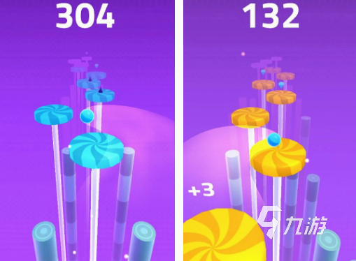 此游戏拥有炫酷的视觉体验,还有激动人心的音乐,在跟随动感的音乐,完成球球向左右等方向跳跃的过程中,只有保证球球不会掉落下来的情况下,才可以顺利完成任务。玩法依旧沿用了大家非常熟悉的长按屏幕,既能控制球球的方向,也要注意左右手的控制。正确躲避障碍物,到达了终点的地方以后,就能获得分数。 5、《球球跳高高》