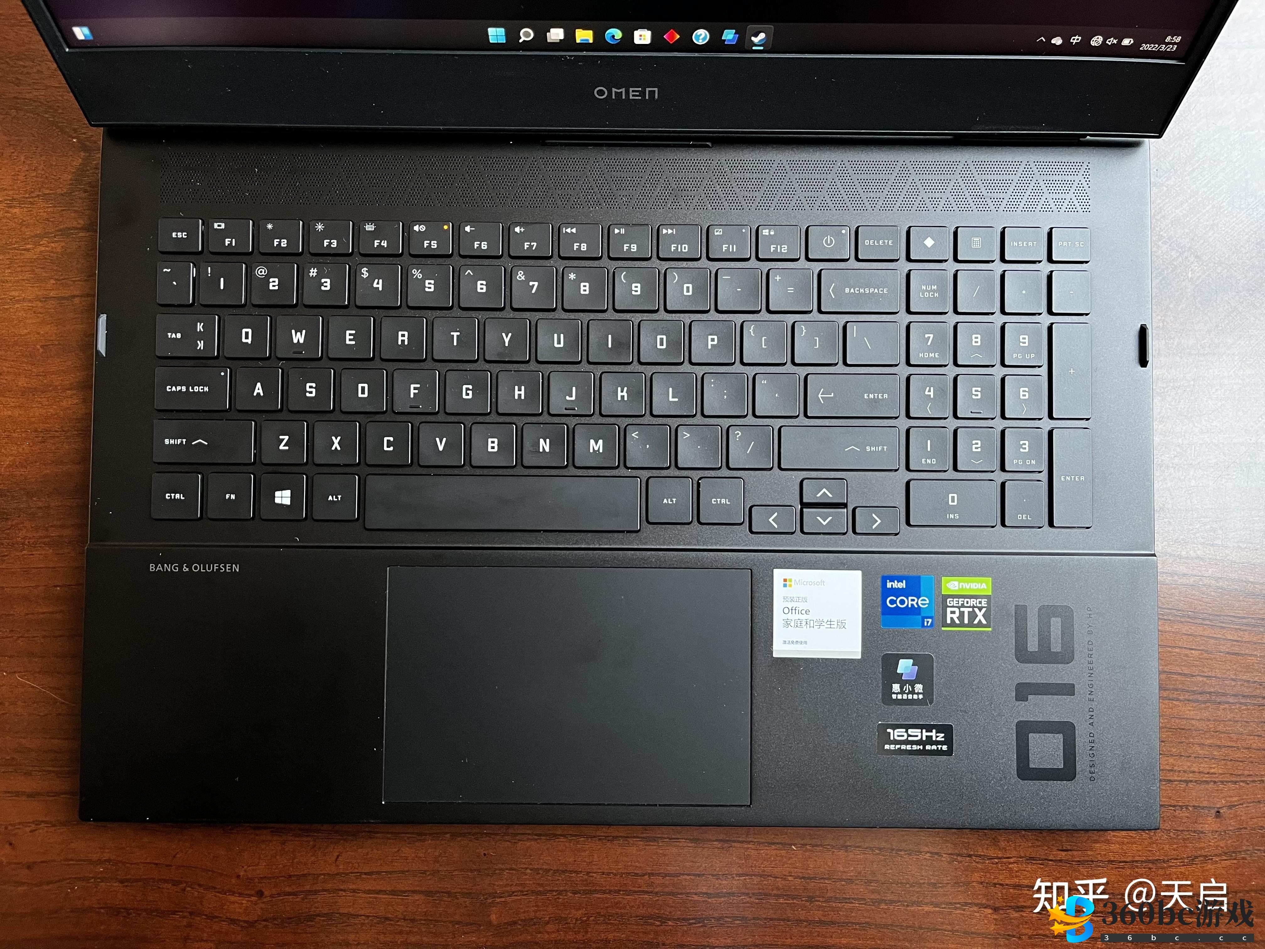 其次就推荐我拿到的这个i7-12700H+3070Ti的次旗舰版本了,屏幕升级到2k 165hz的型号,比主要的竞争对手便宜几百,硬盘大100%,更轻薄,代价是显卡功耗还是只有115w,以及下巴稍显突兀。 ![]() 我拿到的暗影8是国内开卖的高配版,搭载了搭载了12代酷睿i7-12700H+RTX3070Ti独显,是今年次旗舰游戏本的标准核心配置。RTX3070Ti虽然名字里有个Ti,但实际上提升很小,暗影精灵8 硬件上最大的看点还是i7-12700H这个CPU。惠普另一点值得表扬的传统优势则是,惠普在暗影精灵8高配这样的产品中,已经开始提供1T的大容量硬盘了,在现在游戏体积普遍膨胀的大背景下,这是一个比主要竞争对手拯救者有明显优势的地方。 暗影8的另一个优势是相比主要的竞争对手,在机身重量上有比较明显的优势...2.27kg的机身还是称得上主流游戏本里的“便携”定位的。 ![]() 暗影8搭配了230w的圆口适配器,和普通大屏手机相比,体积稍大,不过含线重量比之前测过的天选3还轻了10g,表现不错。 ![]() 暗影精灵8的A面还是继承了家族一贯的传统,正中央有这两年刚换的方形暗影精灵Logo,带渐变色反光,非常有特点。Logo下方则是“OMEN”的品牌英文名称,整个A面显得简约又大方。 ![]() BC面的设计是简洁兼具设计感。B面是常规的三边窄设计,上方是摄像头+双麦克风,下方就是一个比较明显的下巴了,虽然其中有一个OMEN的Logo,但是仍然显大,惠普做的屏轴隐藏设计反而让下巴暴露的更为彻底了,实属弄巧成拙。考虑到现阶段屏幕下巴宽度与屏幕厚度仍然不可兼得,惠普又想做到轻薄机身,那就只能忍一忍下巴了...值得一提的是惠普在A面采用了塑料材质,结果在C面反而采用了金属,部分人可能在意铁板熊掌的黑历史,但是惠普用出色的隔热做了有力的回击。金属掌托剩下的就只有好处了,手感很细腻,而且没有塑料那么容易沾染油脂。 ![]() C面右下角的O16标识也挺有意思,喜欢的人会觉得很有设计感,不喜欢的人,因为这个标识是印上去的,对手感没有任何影响,直接忽略即可,比某些乱加Logo还影响掌托手感的品牌高到不知那里去了... ![]() D面就说一般游戏本的常规布局了,超大进风窗+防止热风回流的长条脚垫+大Logo+型号贴纸一应俱全,还能看到左右下角的扬声器开孔。当然,进风窗内的风扇实际上没有那么大... ![]() 另一个比较有意思的地方实际上是机器背面,惠普把它做成了“ID全出风口”的设计,粗看下来,整个机身后侧全都是出风口,一看散热就非常强悍的样子)甚至细心的惠普还在假出风口的对应位置做出来了塑料制的鳍片...虽然对于散热没啥帮助,不过对于增加玩家们对于产品的信心,想法还是很好的) 总的来说,本机的外观基本继承了暗影精灵7,对于想要追求新设计的用户们来说可能没有那么友好,不过如果一直很喜欢暗影精灵的外观设计,直接买就好啦~ ![]() 上面提到了暗影精灵的摄像头位于上边框处,位置不错,可惜没有上屏蔽罩...下方并不明显的屏轴仍然是惠普的软肋之一,开合手感虽然流畅,但是稳定性的进步空间还是非常大的,希望惠普能在新模具中加以改进。 ![]() 键盘本身的手感也是不错的,回弹清脆有力,键程较长,总的打字和游戏手感很舒适,但是惠普这键盘布局的毛病也就是老生常谈了...随便都能找出来N各槽点: