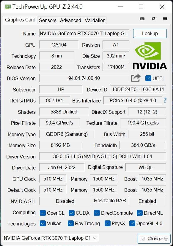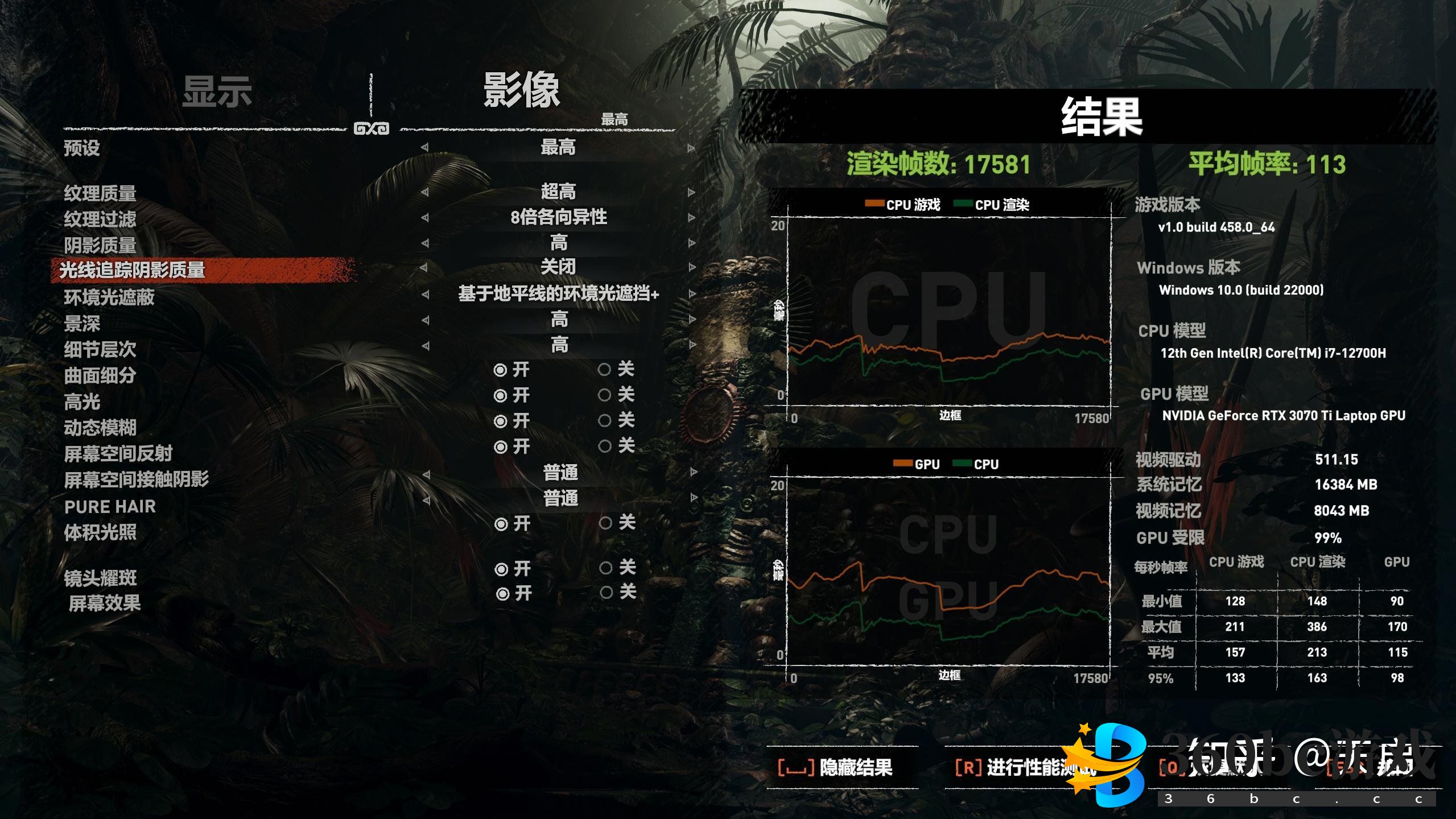 只能希望他们能尽早改进了... ![]() 不过惠普居然给主流价位的游戏本上了四区RGB背光,这点还是值得表扬的...并且背光的效果也很不错,基本没有出现断点问题。惠普在自带的控制软件“Omen Gaming Hub”种提供了相当多的预设灯光效果,有兴趣的玩家可以自己探索一番。 扬声器的表现就很一般了,没什么太大的亮点,和这个价位绝大多数的游戏本一样,听个响水平。 ![]() 机身左侧,暗影8布置了大量的接口,从左至右依次为DC in电源输入,rj45接口,一个USB3.2 Gen1速度的USB-A接口,一个mini DP(DP 1.4)接口,一个HDMI 2.1接口,一个支持100w PD输入的雷电4接口,一个3.5mm耳机接口和一个SD读卡器。 ![]() 机身右侧从左至右则依次为出风口和两个USB3.2 Gen1速度的USB-A接口。整机的接口数量和种类都很齐全,尤其是搭载了游戏本中很少见的SD读卡器,为用暗影精灵8从事创意设计任务的用户提供了一定的便利。 而在排布的位置上表现也不错,最常用的USB-A接口左右两侧都有,电源接口在左上防止与其他接口的线相互干涉,也考虑到了实际使用的场景,好评。 之前暗影精灵8 3060版上市的时候曾经因为供应短缺问题选择了FHD 144hz的屏幕曾经受到了一定的争议,不过我手上的高配就没有这个问题了,继续搭载了一块2k 165hz 100%sRGB的16.1吋大屏,兼顾了清晰度,流畅性与色域表现。 ![]() 用DisplayCAL软件搭配蓝蜘蛛X校色仪对屏幕进行测试,这块屏幕的实测最大亮度为328.3尼特,对比度1040.1:1,都超出了标称值。这块屏幕的基础素质作为今年次旗舰级游戏本的搭配,主要素质上是没有明显短板的。 ![]() 色域覆盖的表现也很不错,基本盖满了100%的sRGB色域,是一块很优秀的高色域电竞屏。而在色域容积方面则小幅超过了100%的sRGB。高色域的屏幕保证了我们日常看到的画面颜色能够显示完全,同时没有广色域屏幕的过饱和问题,兼顾了颜色的准确性与画面观感。 ![]() ![]() 校色后,因为屏幕本身的色域覆盖很不错,这块屏幕的色准表现可以用惊艳来形容。最大ΔE只有0.89,平均ΔE也只有0.37,表现非常棒,不仅可以用来玩游戏,用作创意设计工作也完全ok。 ![]() 色温偏移在20%以上亮度时几乎没有,表现较为一半,不过暗影精灵8 的整体色温在7000K左右,相比标准的6500K稍冷,对中国用户喜欢偏冷屏幕的显示有所照顾。 ![]() 另一个值得称赞的地方是暗影精灵8的校色前色准也好的离谱...对于一般用户来说,完全不需要再自行校色即可直接使用。 ![]() 我手里的这台暗影精灵搭载了第12代英特尔®酷睿™i7-12700H处理器,核心代号Alder Lake,采用了全新的Intel 7制程制造。得益于12代酷睿全新的P+E大小核设计,i7-12700H拥有14核心20线程的物理规格,是今年H45系列中的主流型号。 ![]() ![]() 首先是大家都很熟悉的CineBench R20/23测试,得益于暗影精灵8较为激进的性能释放和今年12代酷睿的强劲性能,R23多核成绩已经突破了17500分,比上一代的i7-11800H或者R7-5800H进步了50%左右,可以说是巨大管的牙膏了... ![]() 在考验性能释放稳定性的CBR15的30轮测试中,暗影精灵8的表现也还不错,前几次的分数较高,在2700+,后续逐渐下降到2560分左右并保持稳定。 ![]() 通过和暗影精灵7上搭载的上一代处理器的跑分对比我们可以看到,12代酷睿不管在单核还是多核性能上,都取得了长足的进步。 ![]() 而在具体应用的CPU测试中,我们选择了Blender的模型渲染作为参照基准。搭载12代酷睿i7-12700H的暗影精灵8仅用了144s即完成了渲染。 ![]() 和搭载上一代H45 i7-11800H以及AMD上一代的产品进行对比,可以看到大小核对于这种纯吃CPU的项目,提升还是很显著的。 ![]() 核显方面,今年的H45核显架构实际上和去年的完全一样,只不过规格从去年的32EU大幅提升到了80EU(i5)或96EU(i7),因此名字也从去年的UHD改成了与低压U一致的Iris Xe。 ![]() 实测性能表现确实也达到了应有水平,i7-12700H上核显1670的跑分已经很接近i5-11320H上的Intel核显,相比上一代i7-11800H更是有了跨越式进步。 ![]() ![]() 独显方面,RTX3070Ti的规格相比3070还是有一定进步的,同时降低了一定的核心频率,其次就是PPAB的功耗上限相比去年的RTX3070有所提升。 ![]() 但是暗影精灵7上的RTX3070Ti还是115w的,性能会受到一定影响。 ![]() ![]() 显卡的TS得分10244,FS得分26691,相比130w的3070几乎没有进步。好在RTX3070Ti的绝对性能确实不错,能够在2k分辨率下hold住绝大多数游戏的高画质,并且已经能够在兼顾画质的情况下打开光追功能了,详见后面的游戏测试。 ![]() 再次汇总一波,暗影精灵8上的RTX 3070Ti,相比自己低配上的RTX3060,进步幅度大约在20%,但是相比满血的3060,进步幅度就大约只有14%,并且相比115w的RTX3070,进步只有3%,可谓是蝇量升级了。但是暗影胜在便宜...10499的价格相比3060版,有20%的显卡性能提升,额外的512G硬盘空间与从FHD144hz升级到QHD165hz的屏幕,可谓是全方位提升了。 ![]() 内存方面,我手里的这台暗影精灵8搭载了16GB的DDR5内存,两个插槽插满组成双通道,由于初代的DDR5时序都比较高,且都是Gear2分频运行,导致延时比DDR4实际上是倒车的,在CSGO这种超高帧数游戏内可能会出现帧数瓶颈,这点就只能等新一代更高频率的D5内存了。不过暗影的这个内存表现相比我之前测过的天选3还是好一些的,不管是带宽还是延迟表现都更好一些。 ![]() 硬盘方面,本机使用了西数的SN810,是一款不错的OEM Pcie4.0固态硬盘。本机一共有两个固态硬盘位,且都支持Pcie 4.0的固态硬盘,这