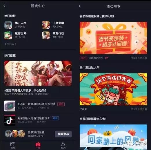 其中游戏广场把游戏论坛和活动相互融合起来促进活跃,而官方自己发的#号活动,提升了达人和普通用户的参与积极性。对他们来说,参与官方话题,有助于提供视频的曝光播放。