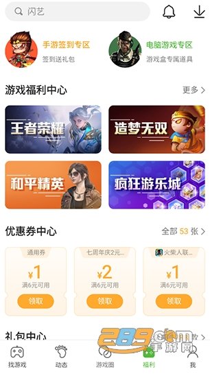 4、最后,点击福利,分为手游专区与电脑专区,这里都是有关游戏的福利。